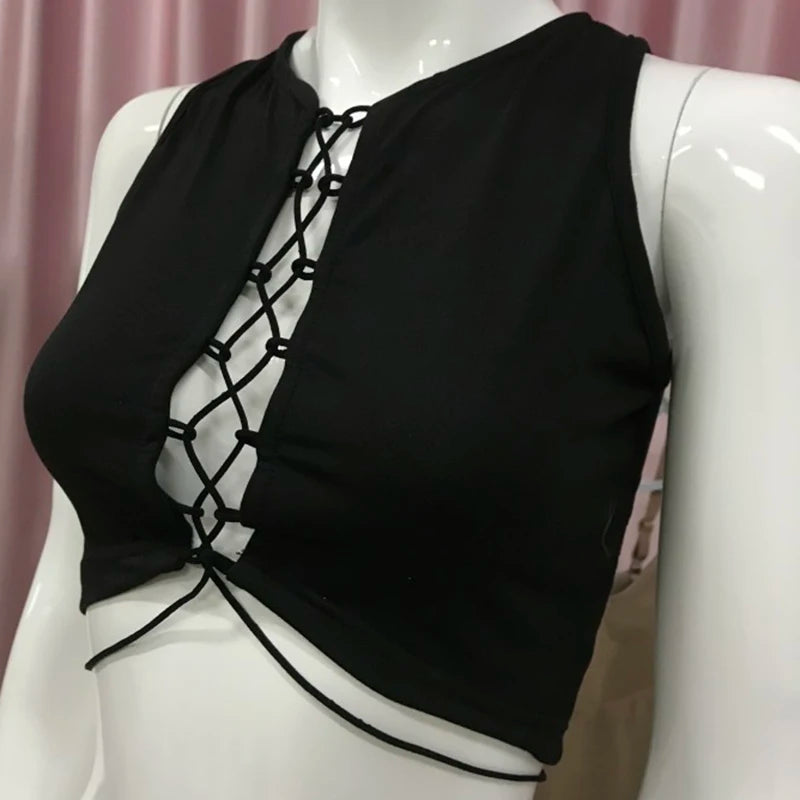 топ Bandage Black Sexy Backless Tank Tops for Women Lace Up Sleeveless Summer Top Cropped Club Party Fashion Outfits crop top