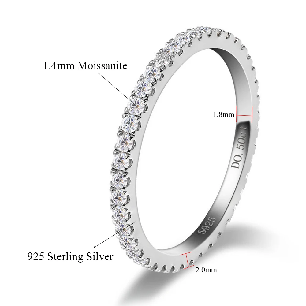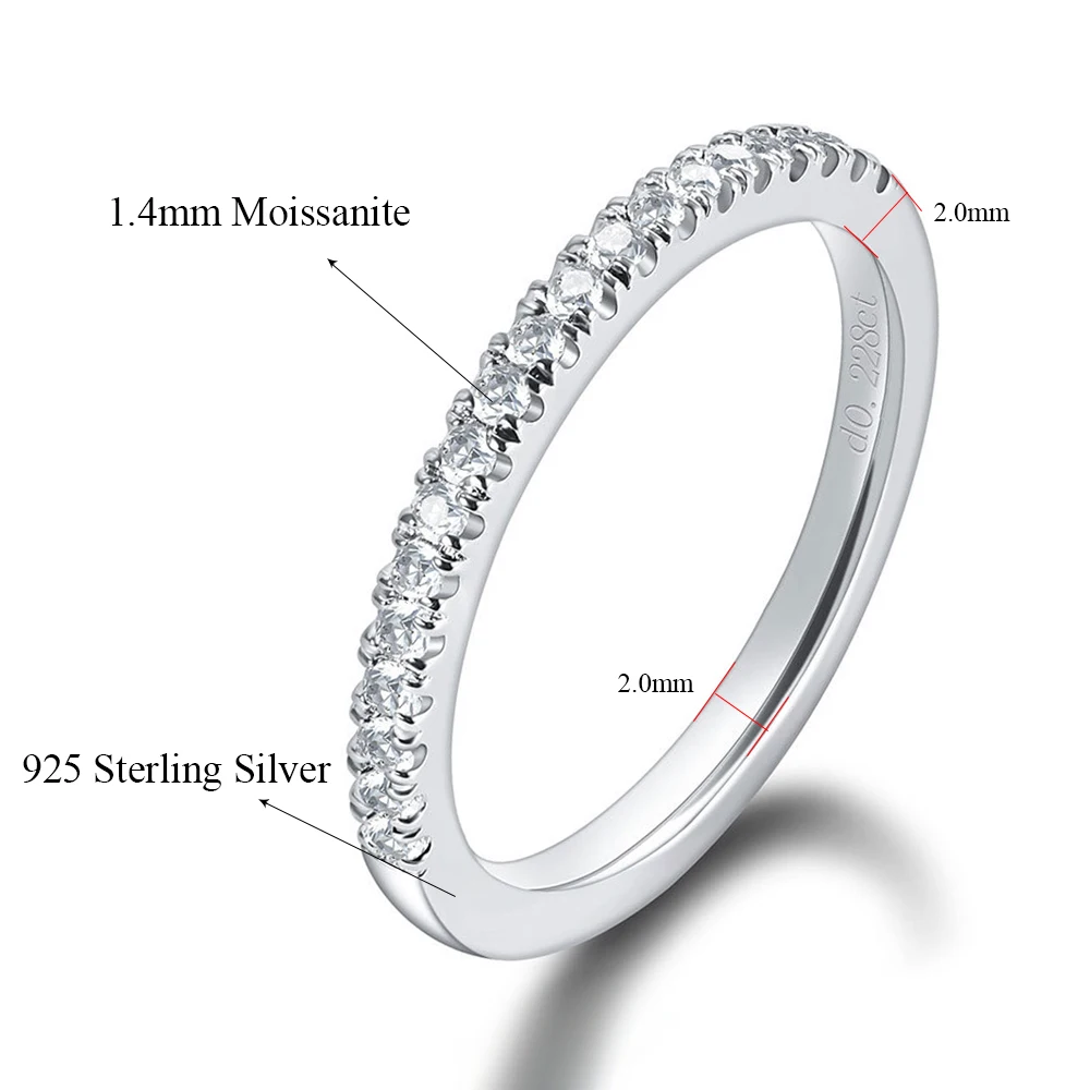 1.4mm Moissanite Wedding Band for Women S925 Sterling Silver Moissanite Rings D Color VVS1 Lab Diamond Ring Fine Jewelry Gift