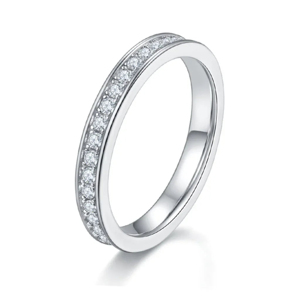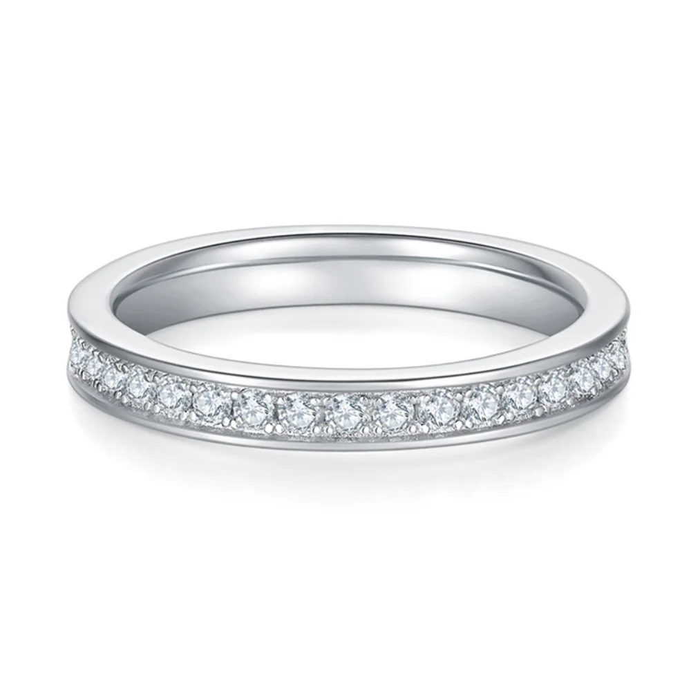 1.5mm Full Moissanite Rings for Women Eternity Wedding Band S925 Sterling Silver D Color Channel Set Lab Diamond Fine Jewelry