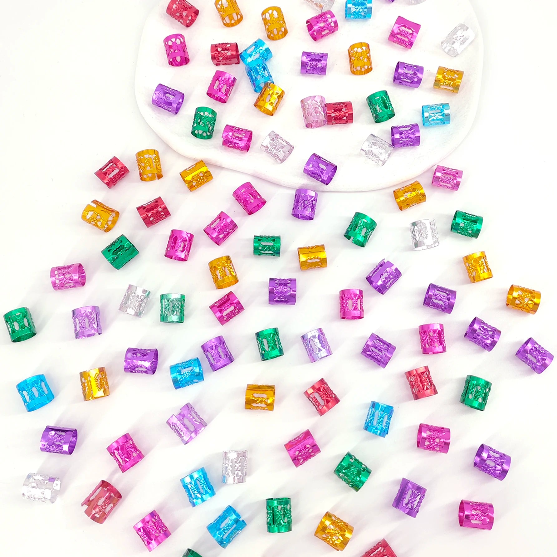 100Pcs multicolour Hair Jewelry for Braids Dreadlocks Beads Hair Rings Hair Clips Adjustable Metal Cuffs for Hair Accessories