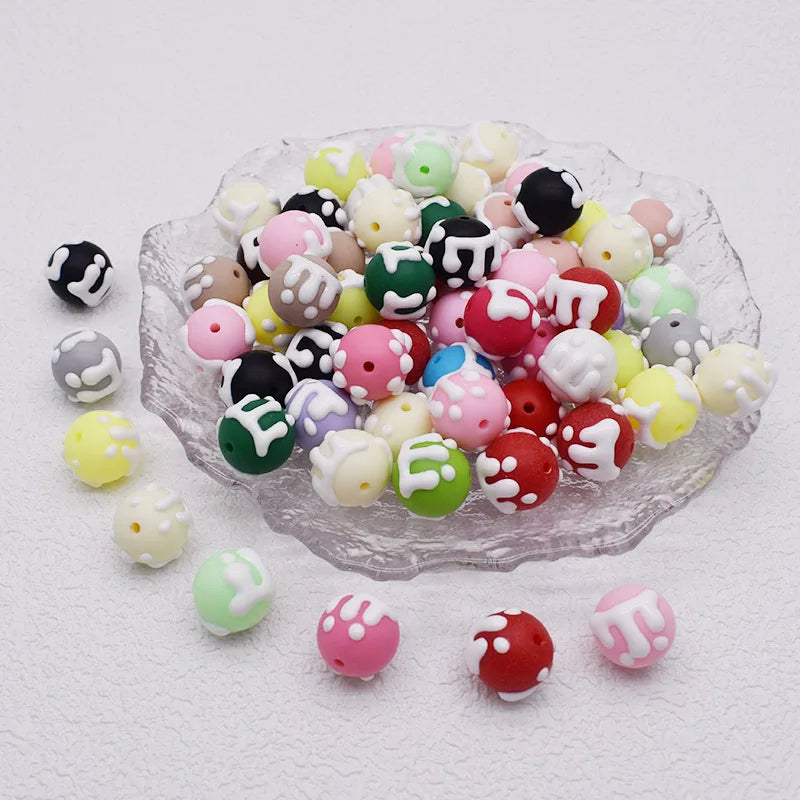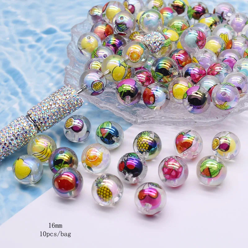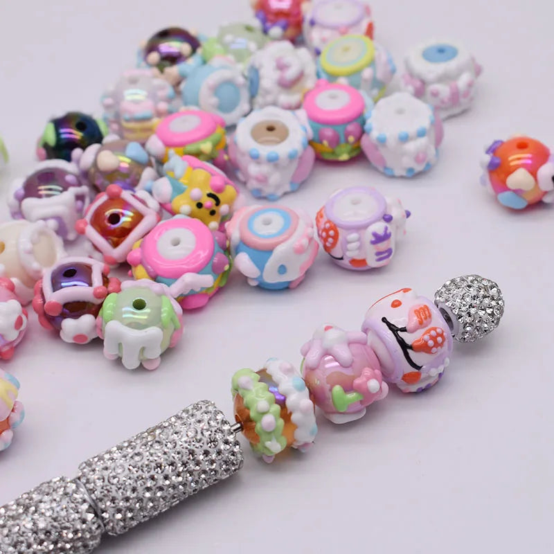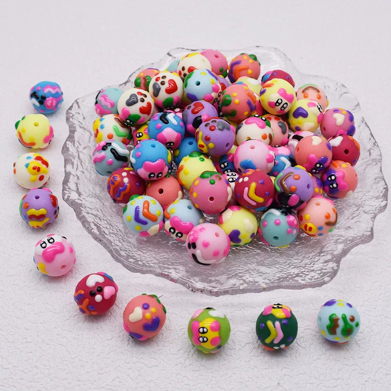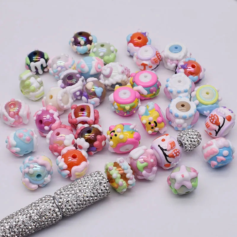 10pcs/bag Acrylic Beads Fashion Hand Drawn Cartoon Painting Loose Beaded DIY Handmade DIY Bracelets Mobile phone chain Bead Pen