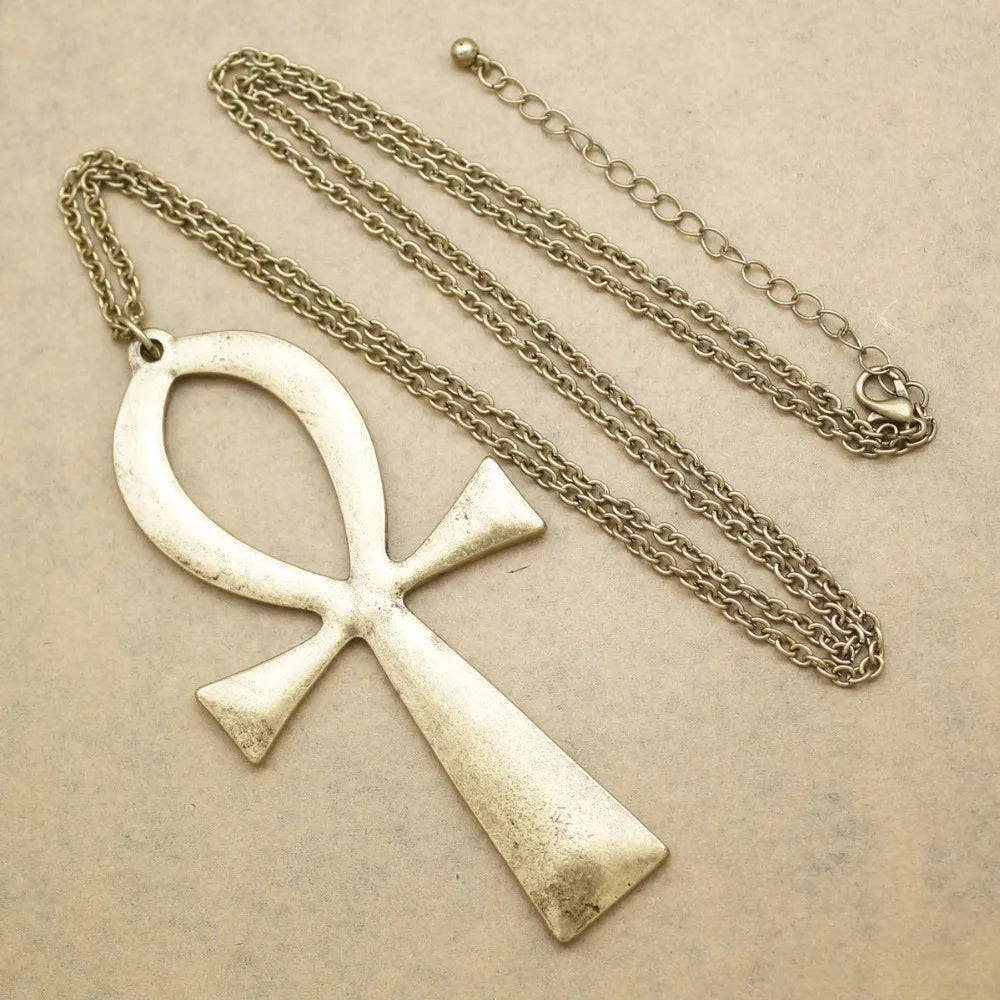 10x5cm Vintage Egyptian Life Big Ankh Cross Pendant Long Chain Necklace Fashion Jewelry Men and Women Accessories Dropshipping
