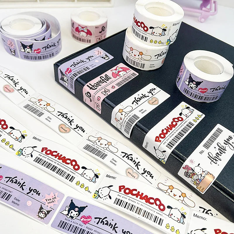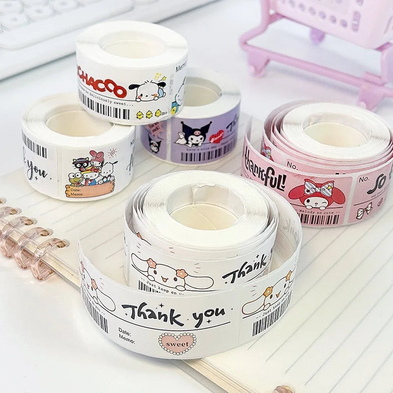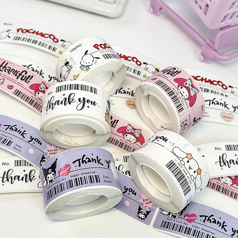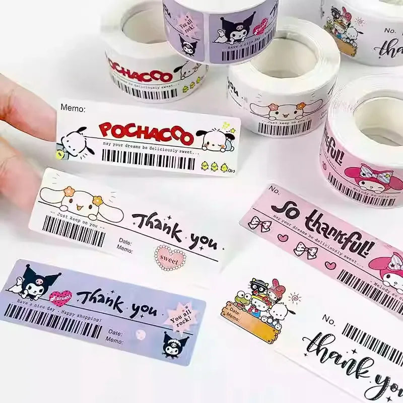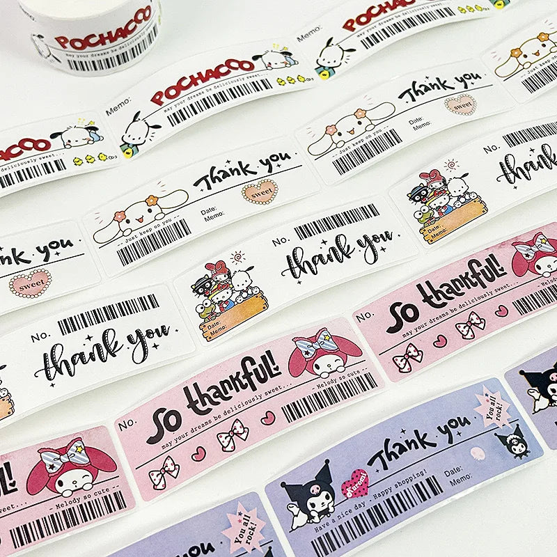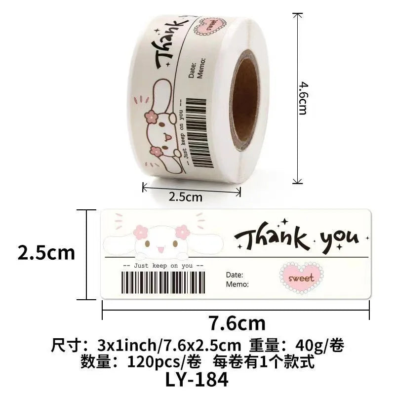 120PCS Cute Sanrio Kuromi My Melody Stickers Roll Kawaii Cartoon Thank You Sealing Labels Sticker Anime Vinyl Decor Decals Gift