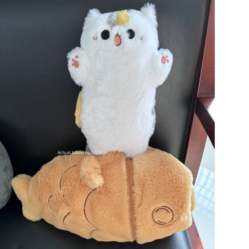one piece 38cm Kawaii Japan Taiyaki Cat Plush Toy Anime Figure Cat Hiding in Cushion Bag Ferry Animals Plushie Throw Pillow