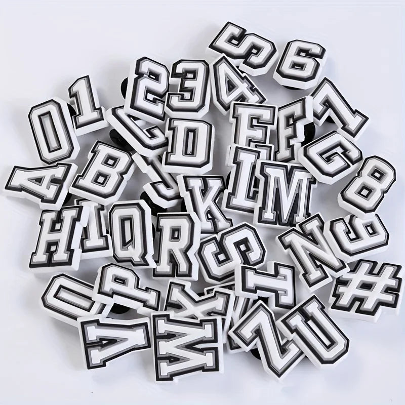 1pc Black White Alphabet Shoe Charm, PVC Shoe Accessory For Crocs, Wristband, Slipper,DIY Accessories Gifts For Holiday Party