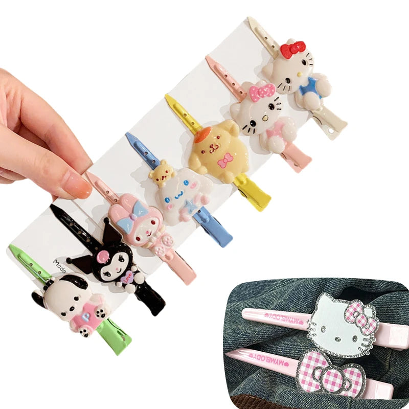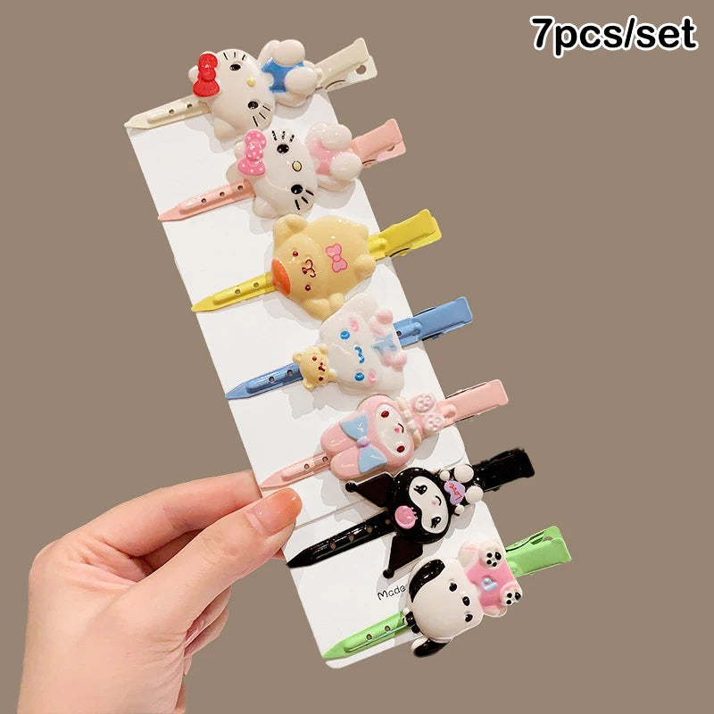 2/3/7pc Sanrio Hello Kitty Hairpin Pin Anime Cartoon Kuromi Cinnamoroll My Melody Barrettes Kawaii Hair Accessories Holiday Gift
