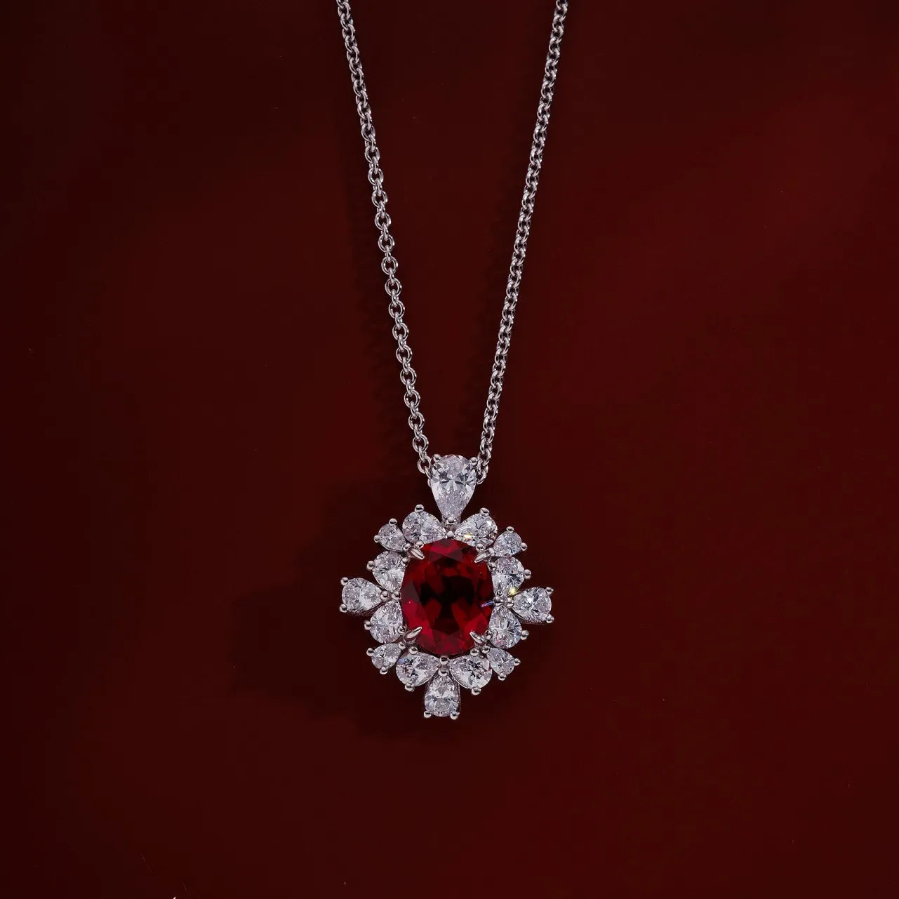 2.5ct 5A Lab Grown Ruby Necklace For Wowen Red Diamond 925 Silver Plated 18k Gold Necklace Material:S925 silver+lab grown ruby+18k gold plated Main stone: 8*10mm