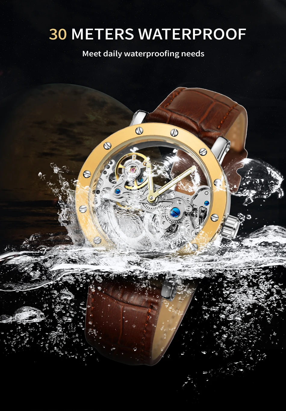 2024 Top Brand Luxury Steel Skeleton Tourbillon Automatic Watch Men Leather Mechanical Waterproof Luminous Elegant Wrist Clock