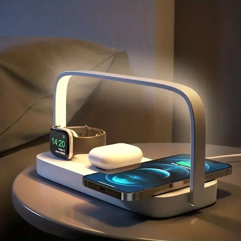 4 In 1 Fast Wireless Charger Stand Led Night Light Bedroom Lamp Phone Charging Station Dock For iPhone iWatch 2-10 SE Airpods *