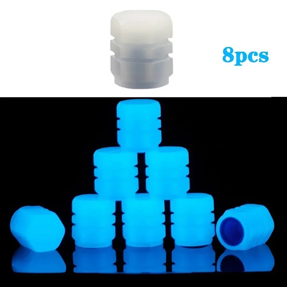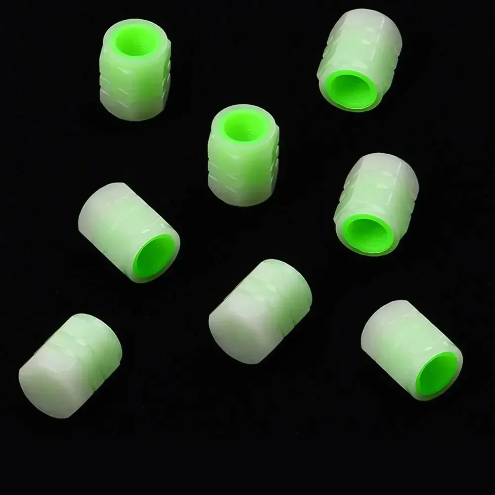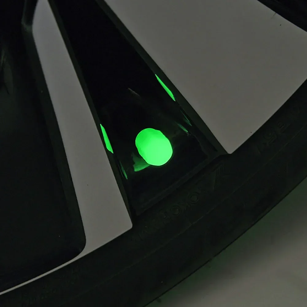 4 Pcs Tire Valve Stem Caps Car Luminous Tire Air Cap Fluorescent Safety Valve Core Cover For Car Truck Suv Motorcycles Bike