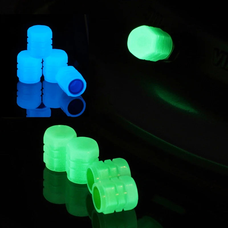 4 Universal Fluorescent Luminous Tire Valve Stem Covers Car Tire Valve Cap Green /Yellow/Blue/Red Fluorescent Powder