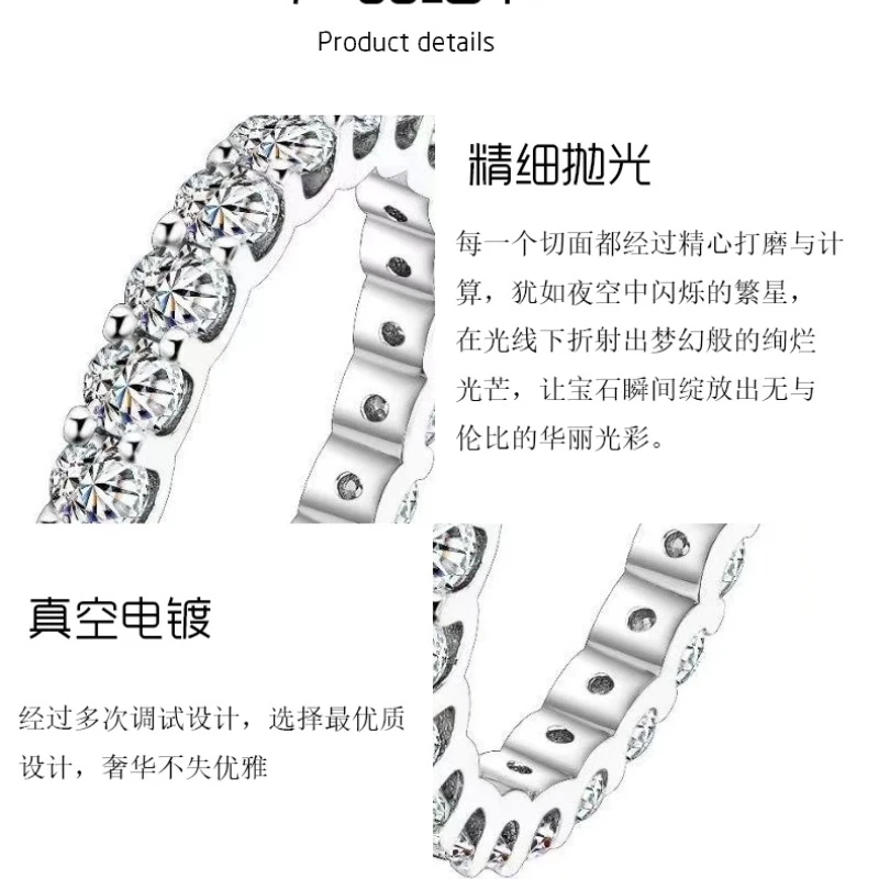 925 Silver Moissanite 2.2CT HipHop ring around electroplated 18k gold platinum exquisite fashion light luxury design women ring