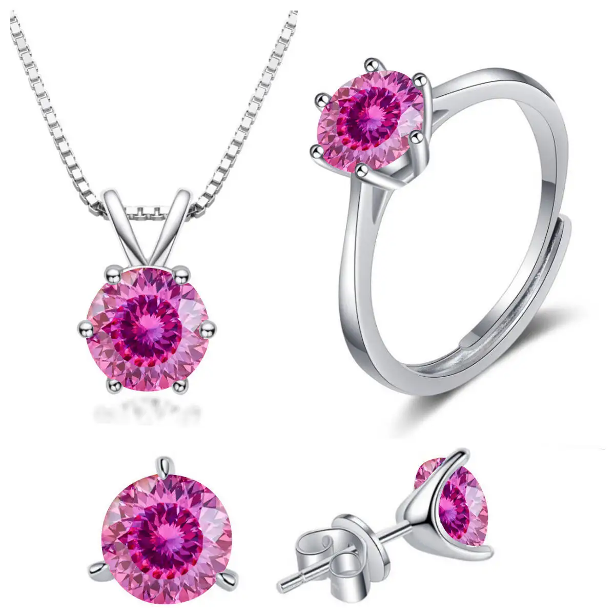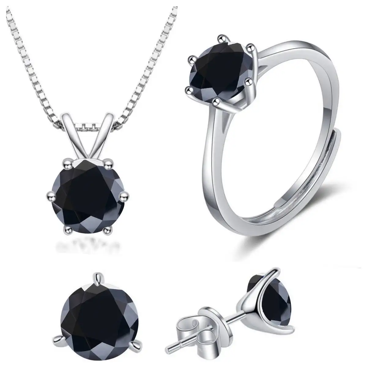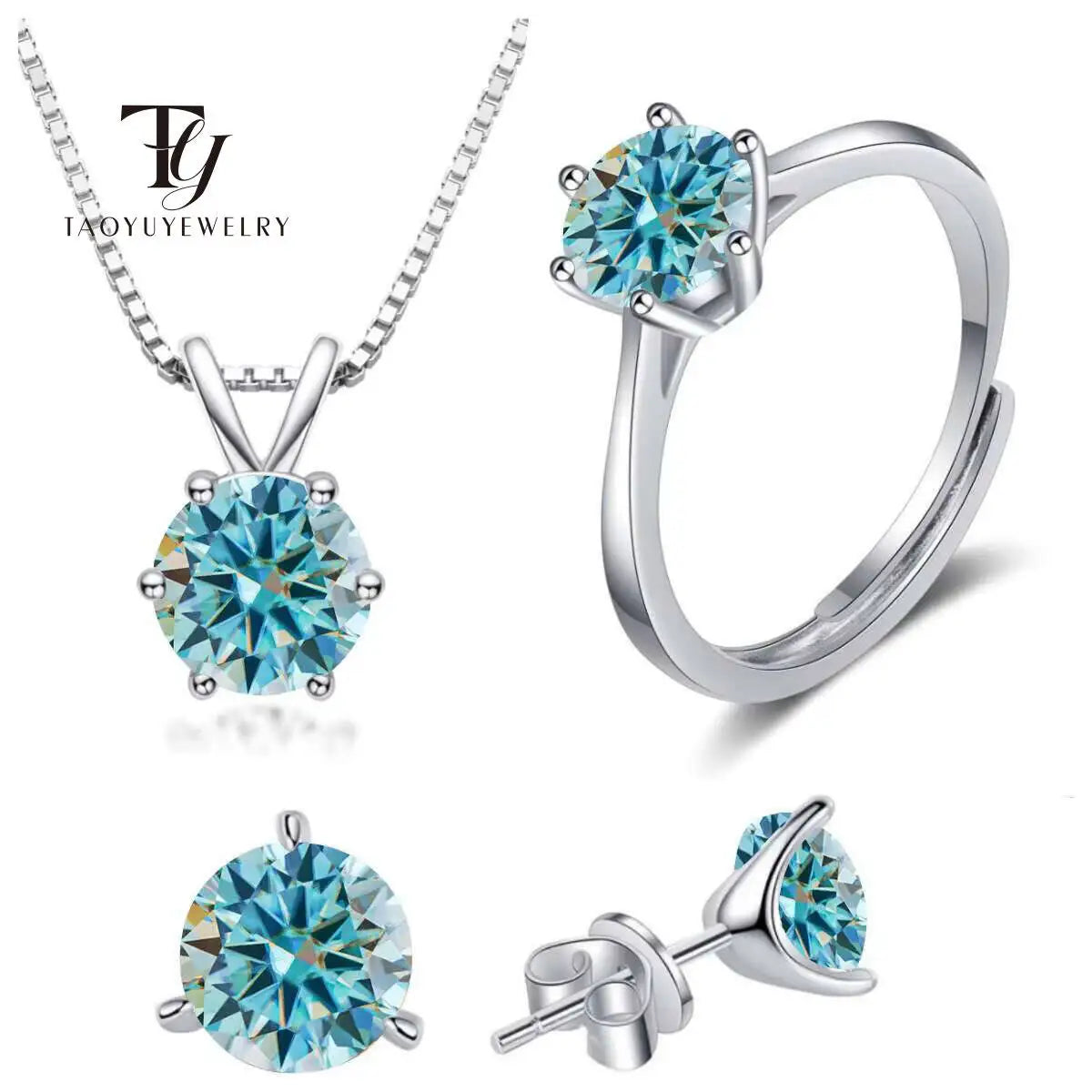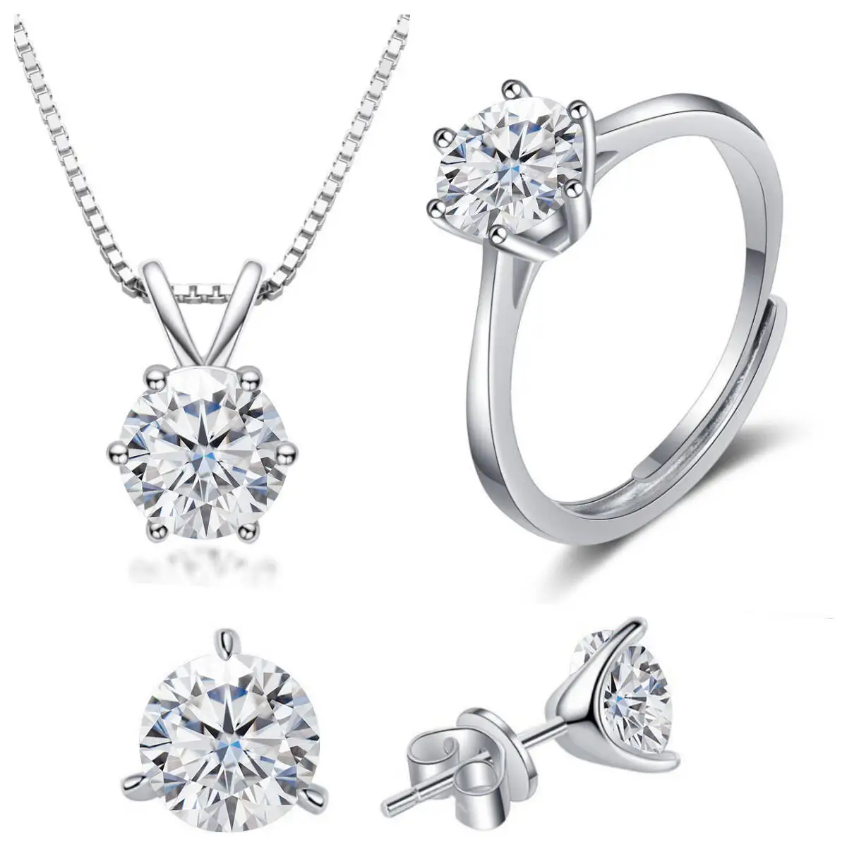 925 Sterling Silver 1CT*4 D Color Moissanite Ring Earring Necklace Set Fine Jewelry Set Elegant Ladies Jewelry For Party Wedding