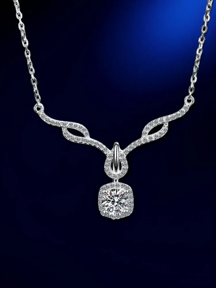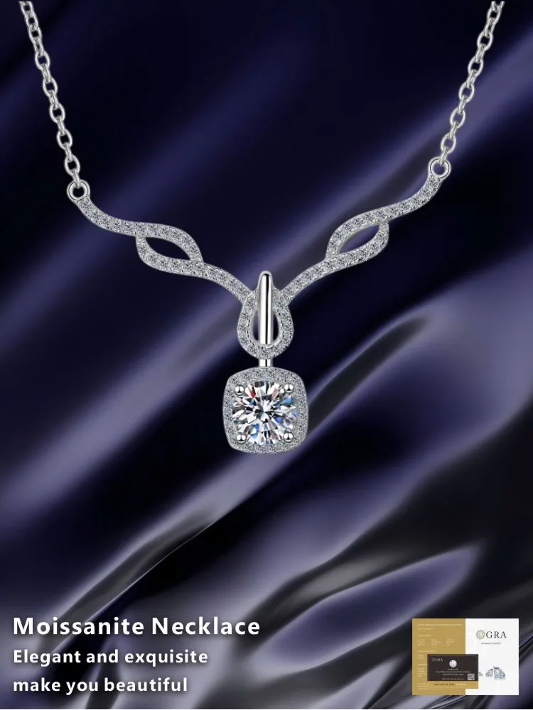 925 Sterling Silver Moissanite Luxury Fashion Four-clawed Female 80 Cent Pendant Necklace Certified