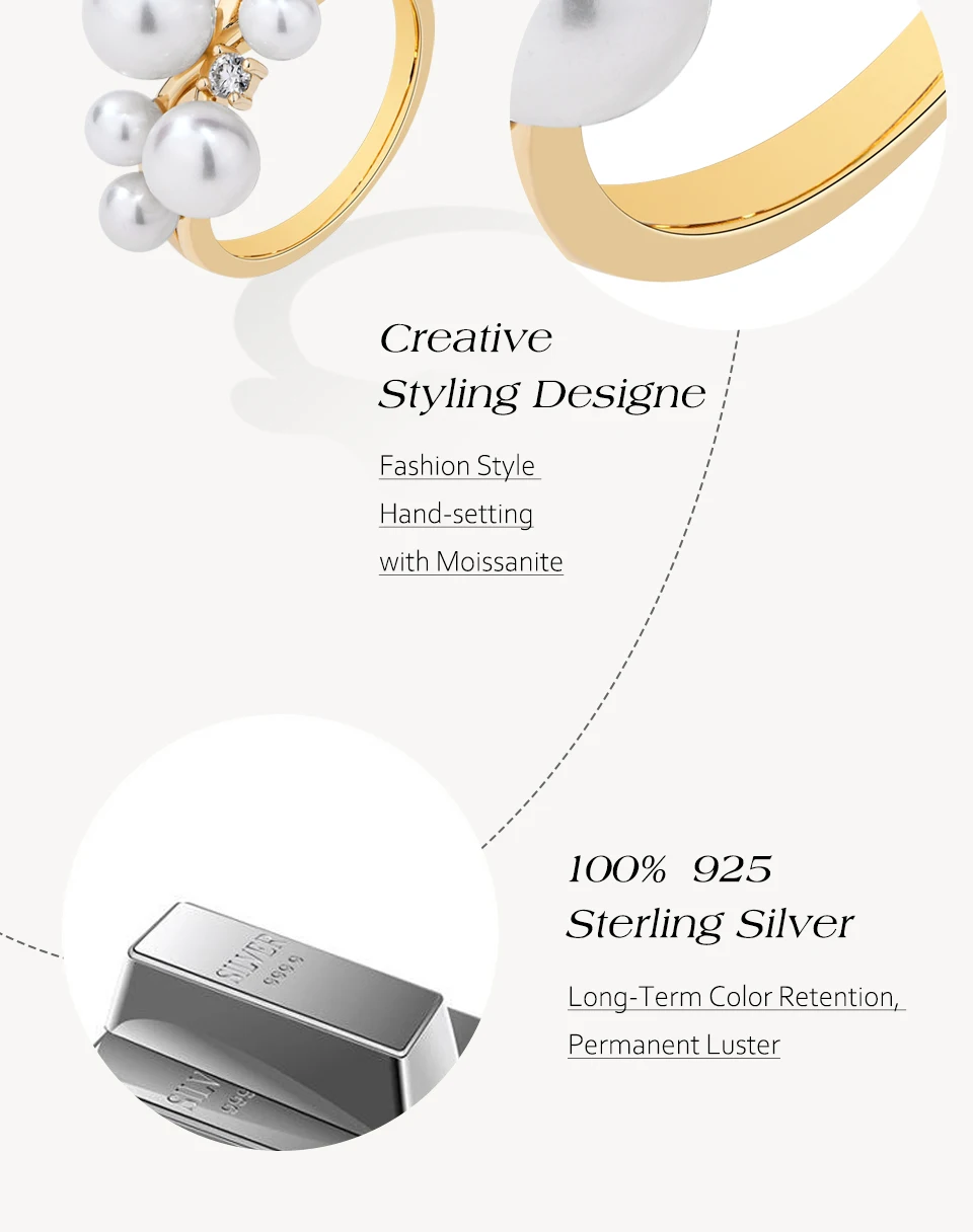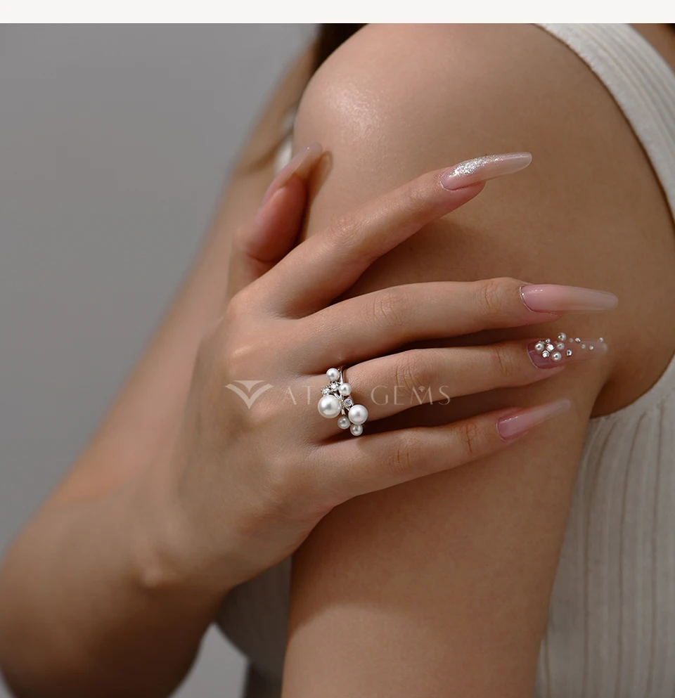 ATTAGEMS Pearl Moissanite Ring DVVS 100% S925 Sterling Silver Plated With18k Gold for Women Engagement Bride Jewelry Luxury Gift