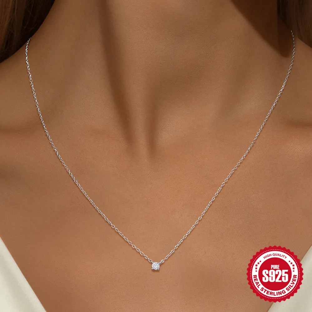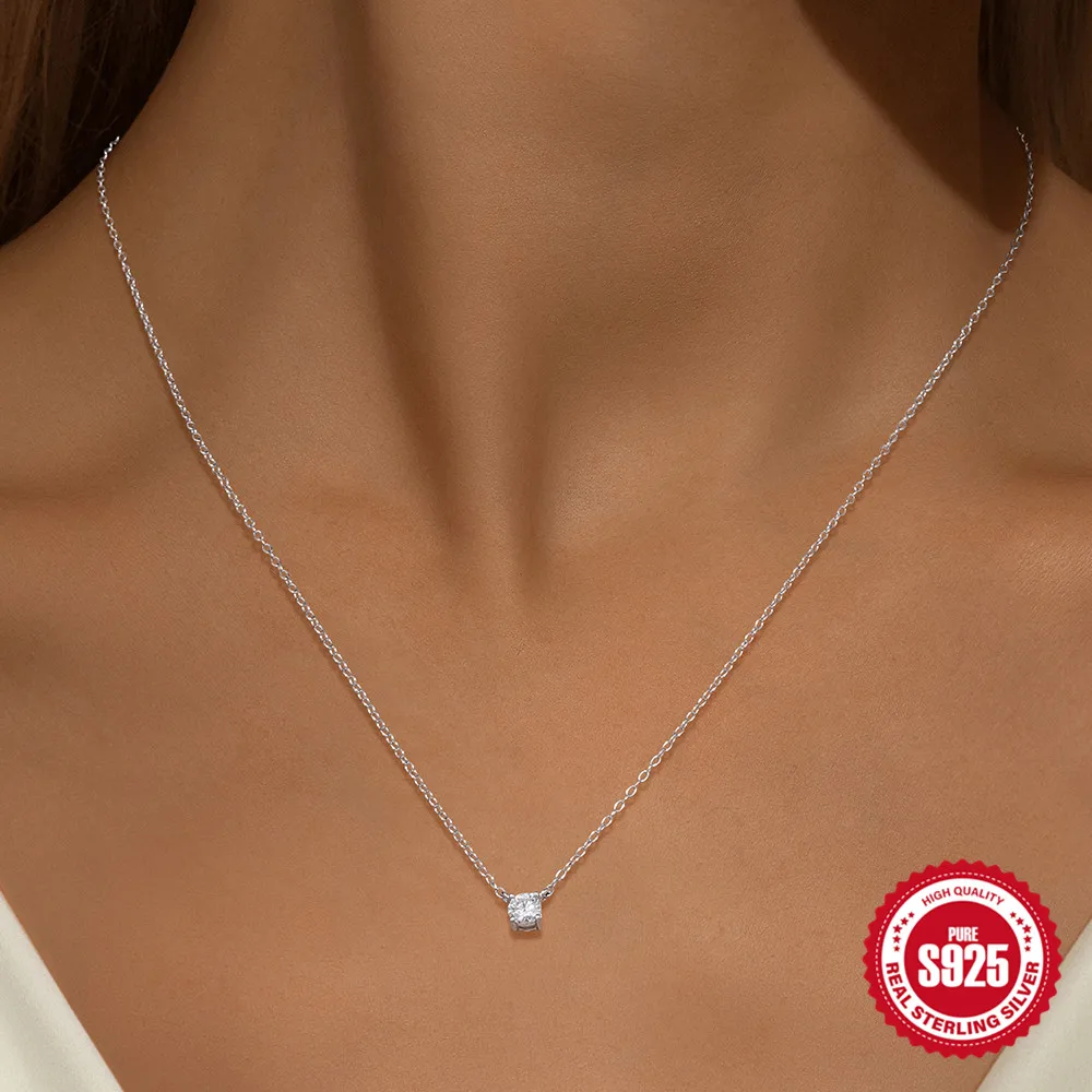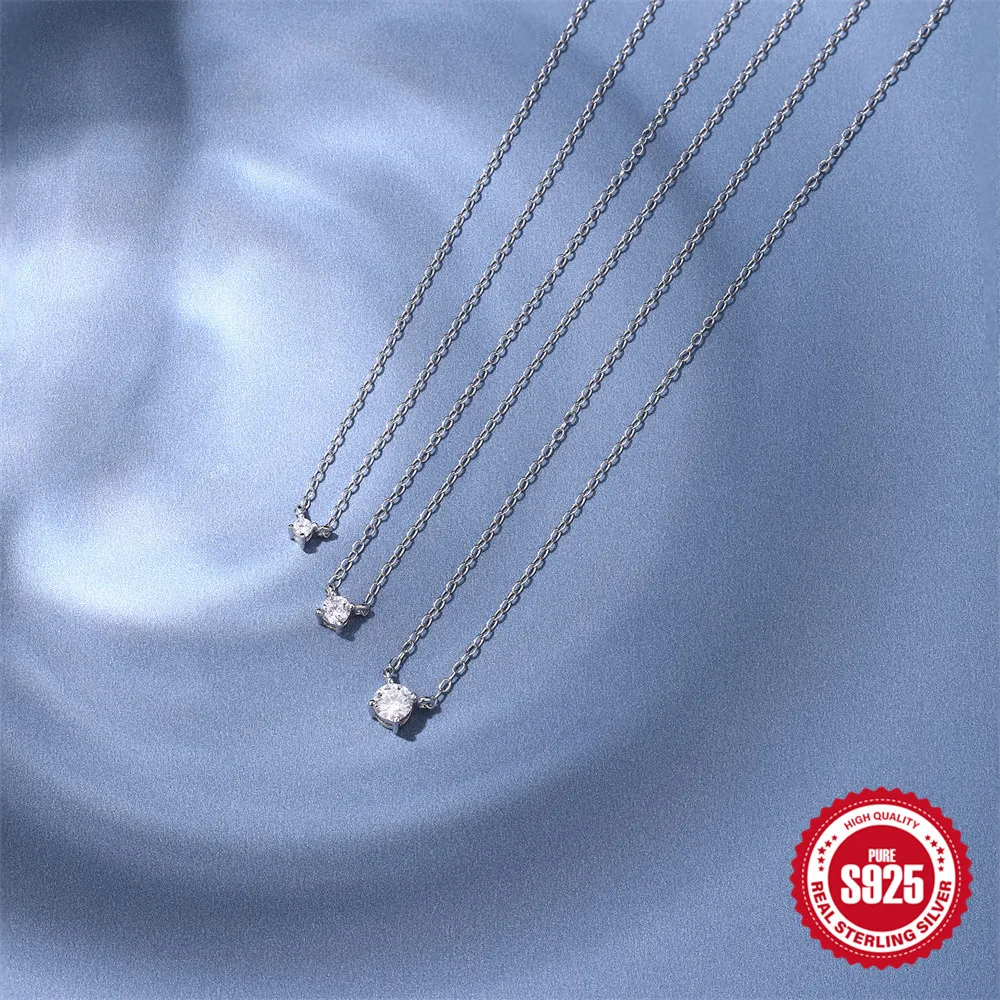 BOAKO 925 Sterling Silver Four Prong Setting Moissanite Pendant Necklace for Women Wedding Bridal Jewelry Personalities Luxury