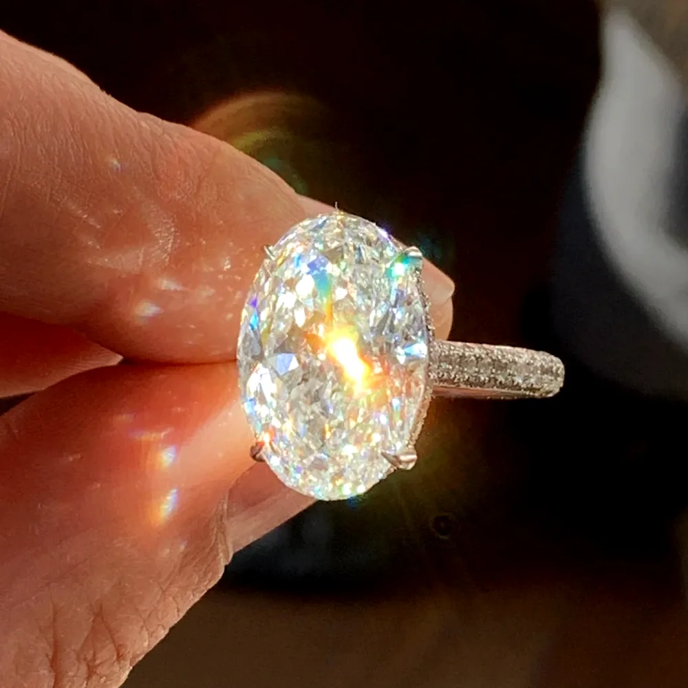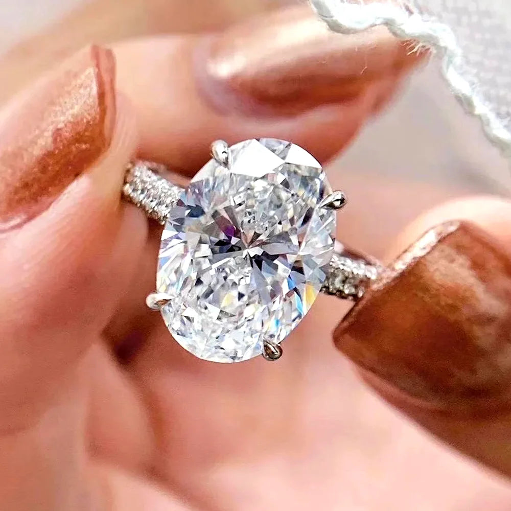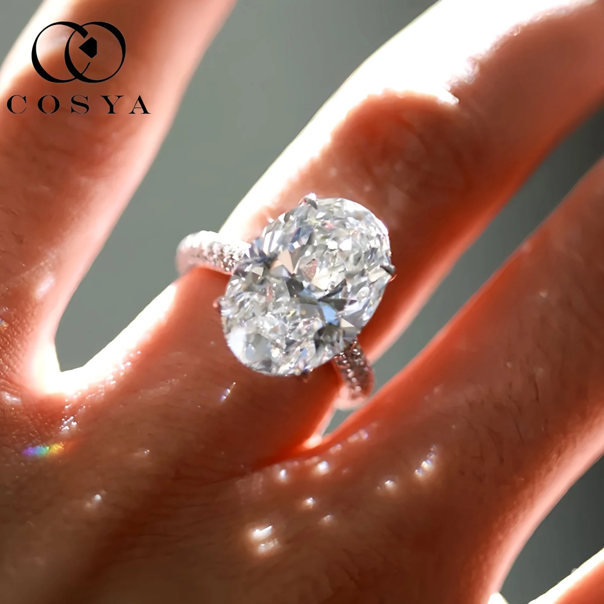 COSYA 8CT 10*14mm Oval Cut Full Moissanite Ring S925 Silver Sparkling GRA Lab Diamond Wedding Band For Women Luxury Fine Jewelry Gift Wholesale
