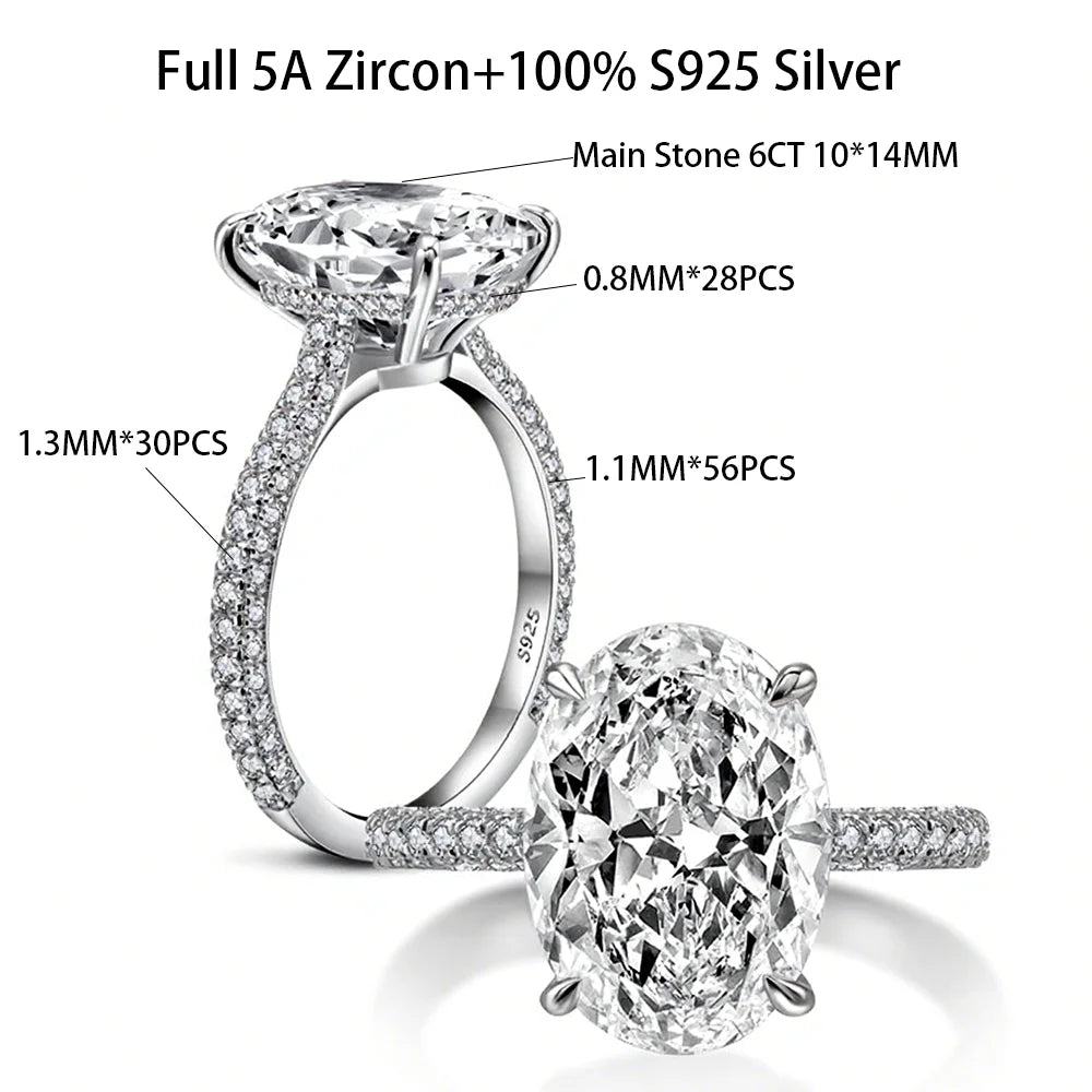 COSYA 8CT 10*14mm Oval Cut Full Moissanite Ring S925 Silver Sparkling D Lab Diamond Wedding Band For Women Luxury Fine Jewelry