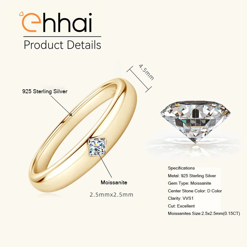 Ehhai GRA Certified Princess Cut Moissanite Ring for Women 925 Sterling Silver Engagement Promise Wedding Band Fine Jewelry Gifts