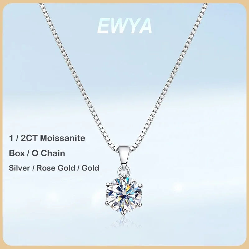 EWYA 1 2 3 Carat 100% Real Moissanite Pendant Necklace Female 6 Prong S925 Sterling Silver Wedding Party Fine Jewelry Christmas New Year Gifts