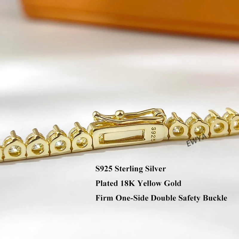 EWYA 3 Claw 0.4CT Gradient Full D Color VVS1 Moissanite Tennis Necklace for Women 925 Silver Plated 18k GRA Certified Neck Chain