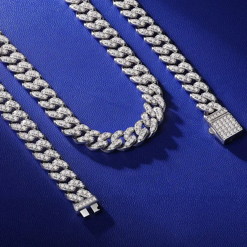 moissanite necklace pass diamond test: moissanite cuban chain for men
