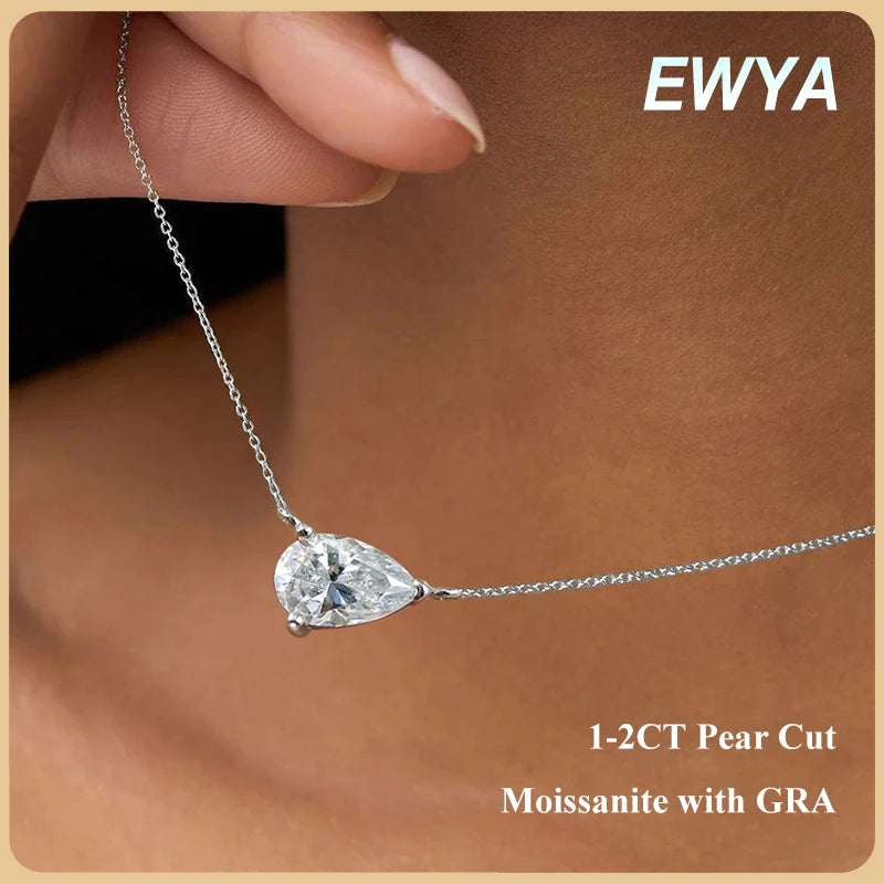 EWYA Pear Cut 1/2CT Solitaire Moissanite Pendant Necklace Woman Man 925 Silver Waterdrop Lab Diamond Gra Certified Neck Chain