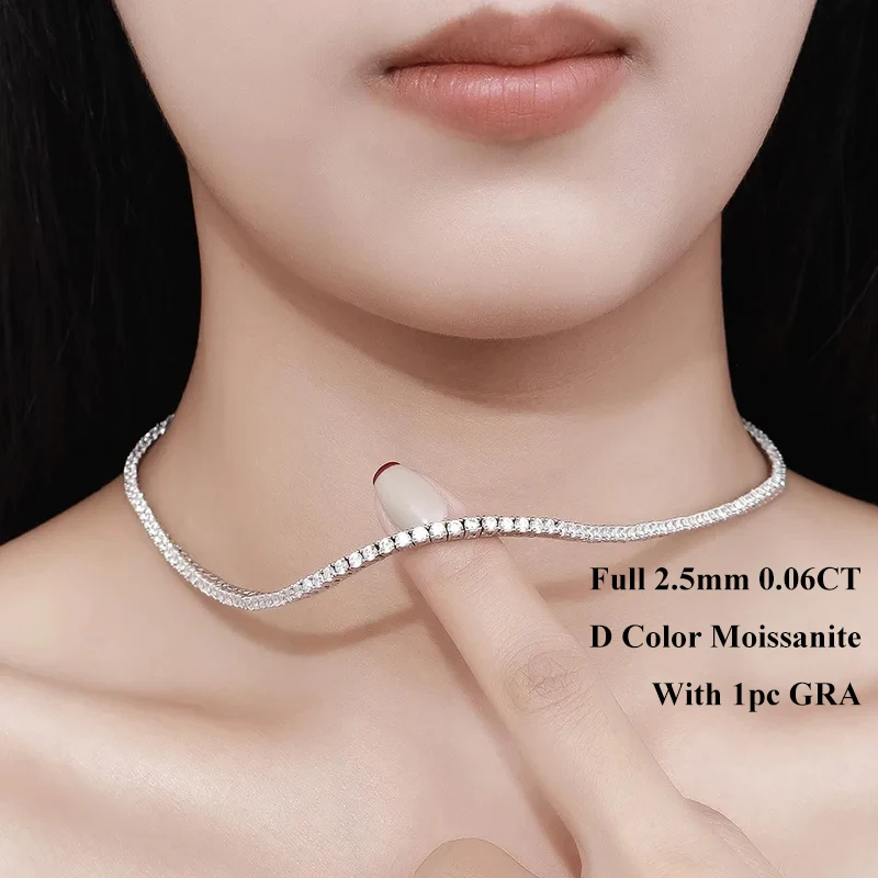 Certificate Number: 2mm 2.5mm full moissanite tennis necklace