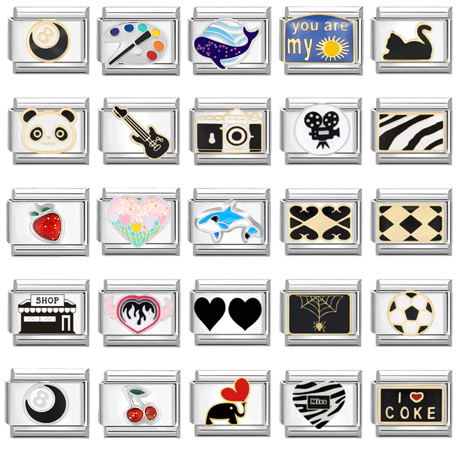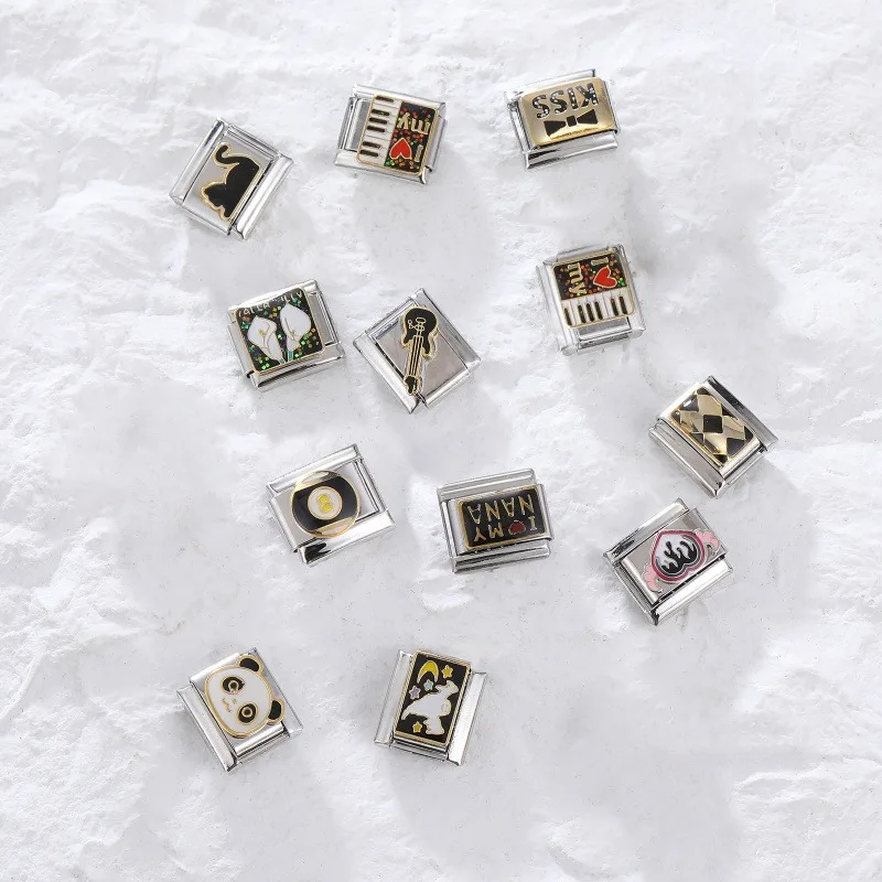 Fashion Charm Bracelet Checkerboard Panda Elephant Charm Italian Links Fit 9mm Bracelet Stainless Steel DIY Making Jewelry
