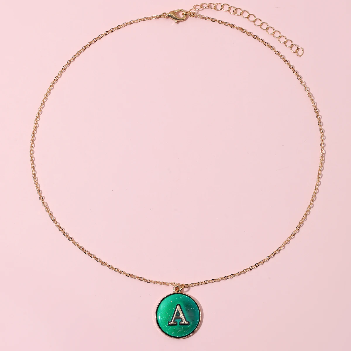 Fashionable Temperature-Sensitive Color-Changing 26 Letters Pendant Necklace Zinc Alloy Mood Regulation Chain Jewelry Accessory