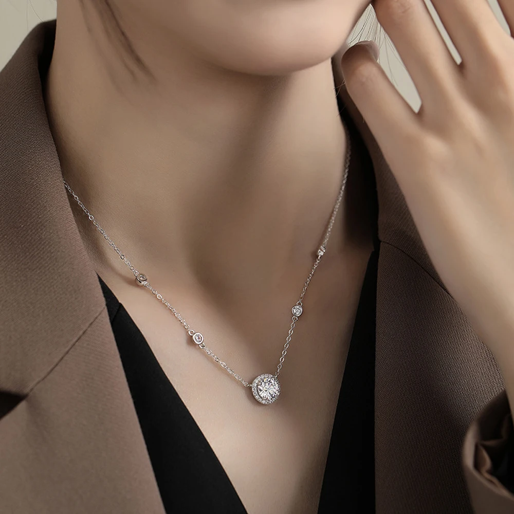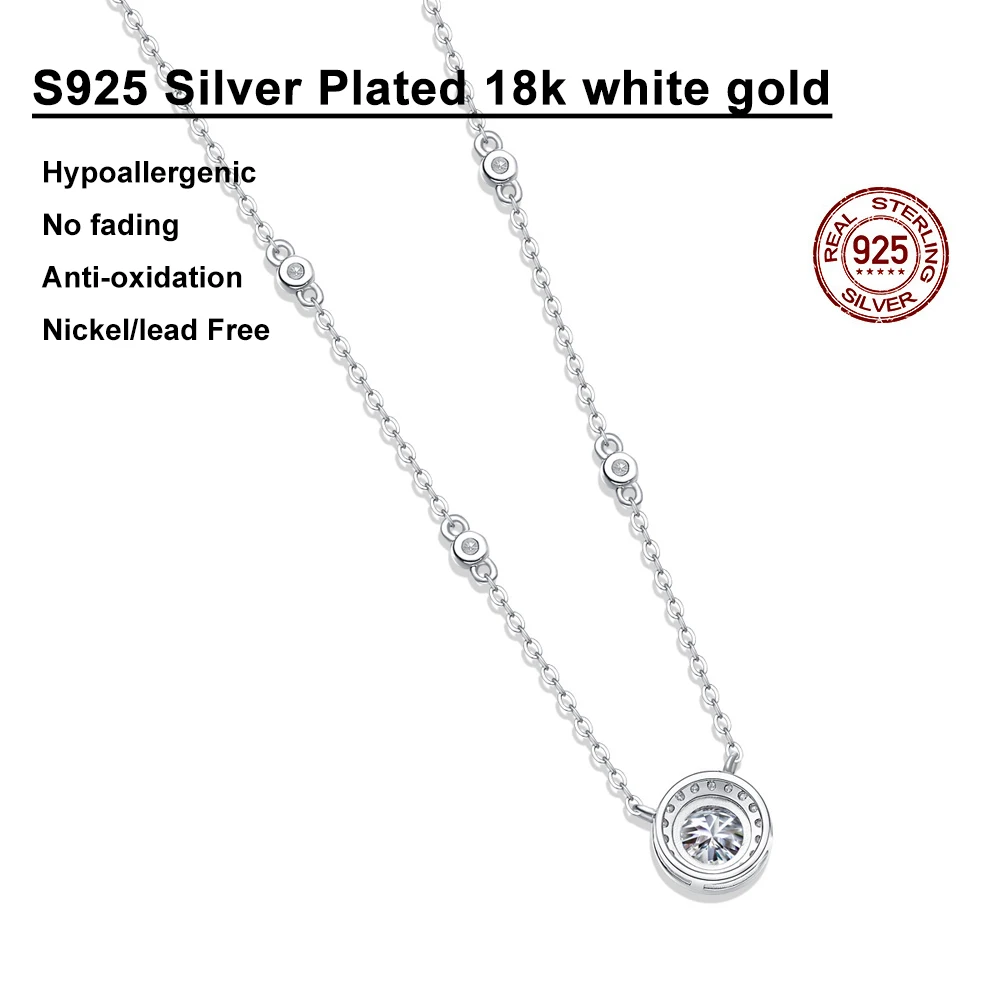 The Moissanite pendant necklace is made of S925 pure silver+18k white gold plated, which can maximize the retention of silver color while maintaining product aesthetics. Our materials support testing by any third-party organization.