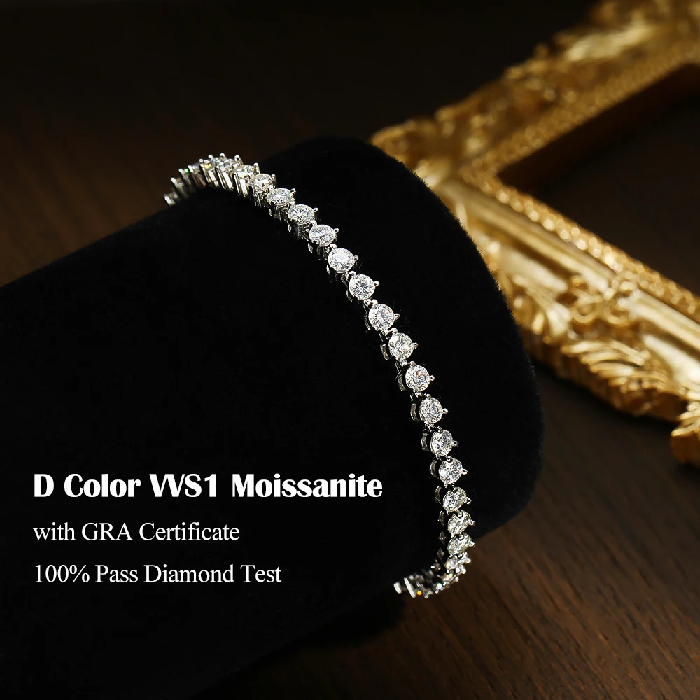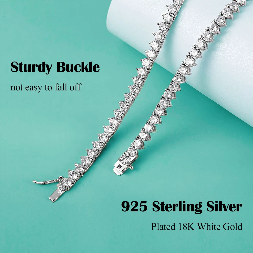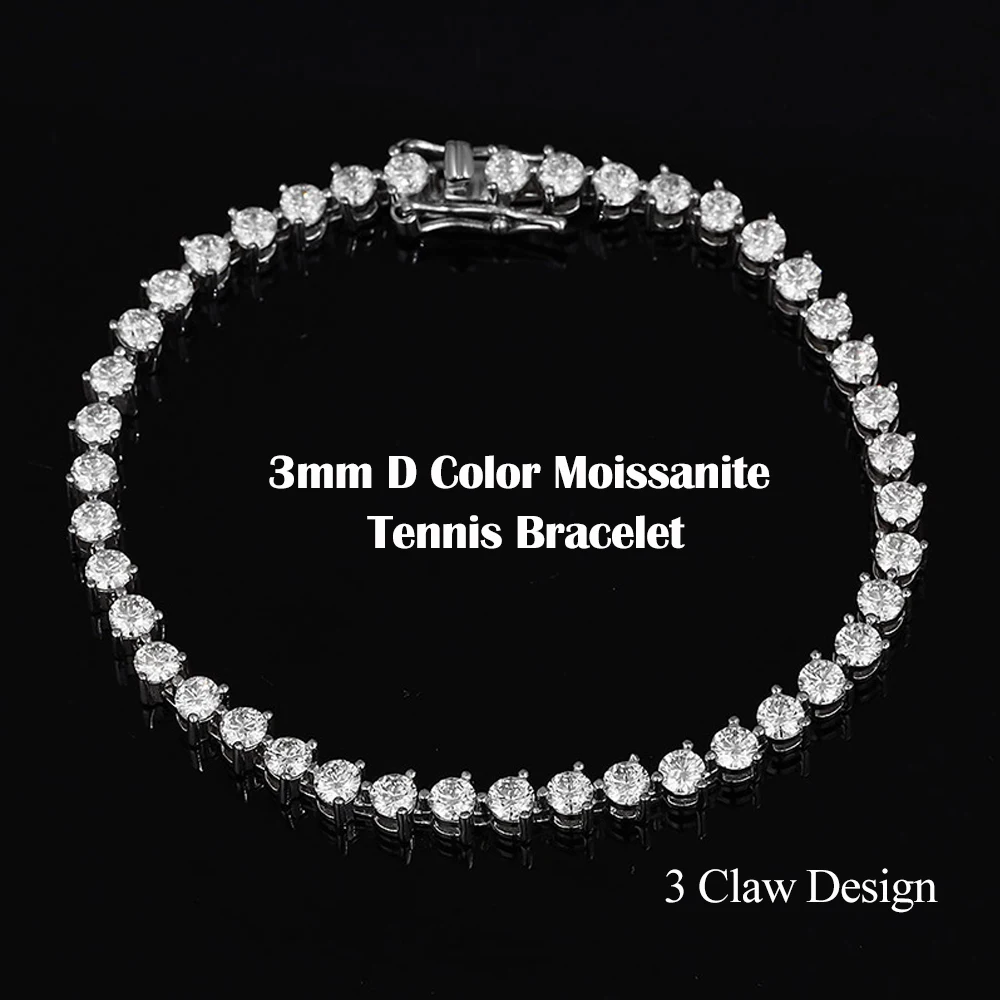 3mm Real Moissanite Tennis Necklace/Bracelet 925 Sterling Silver Plated 18k White Gold 3 Prong Setting Full Diamonds Chain with GRA for Women Men