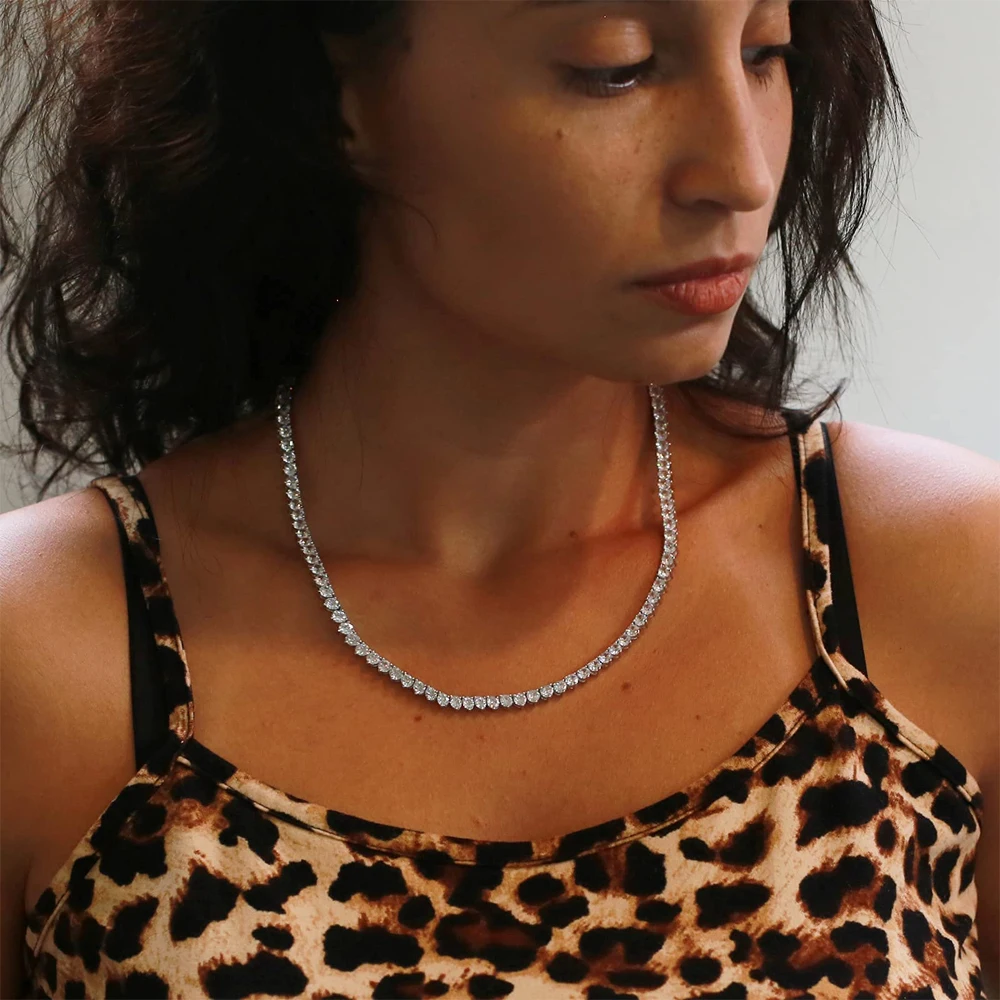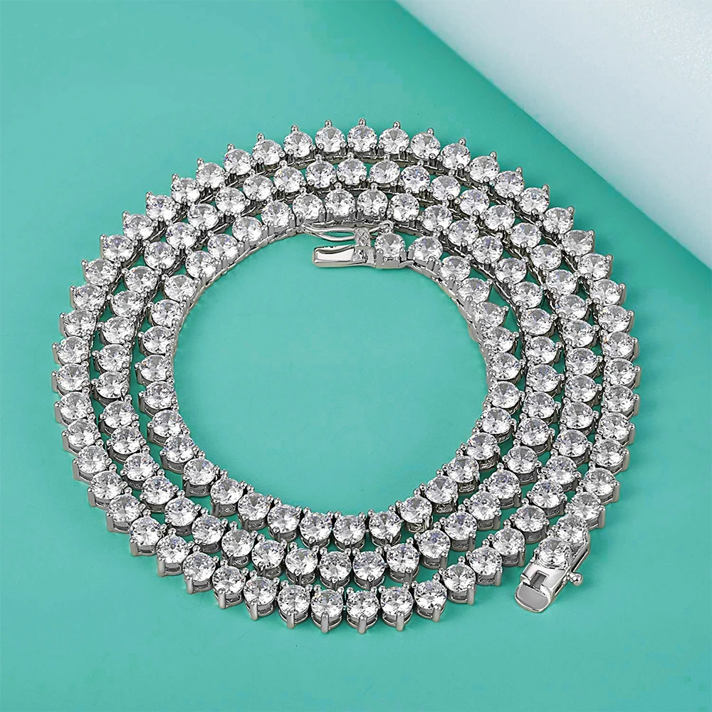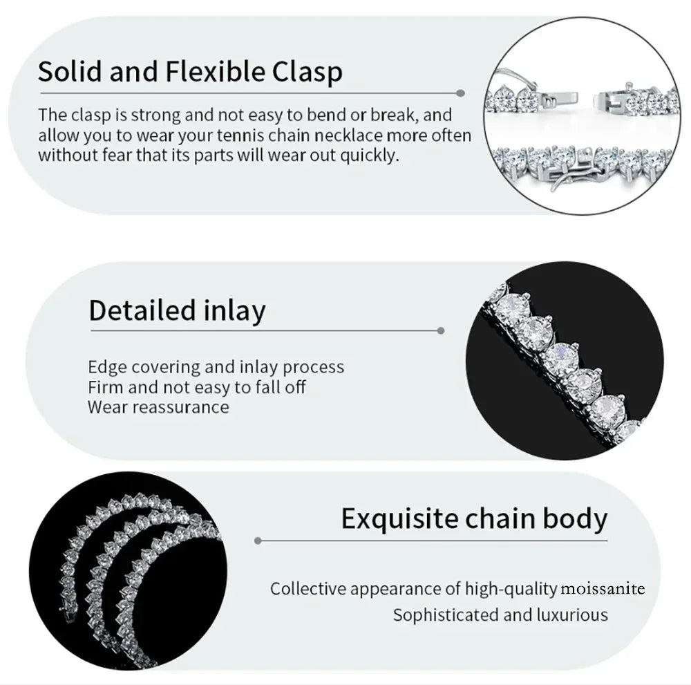 FEOBUR 3mm Moissanite Tennis Necklace for Women Men S925 Sterling Silver Full Diamond Neck Chains with GRA Trendy Jewelry Gift