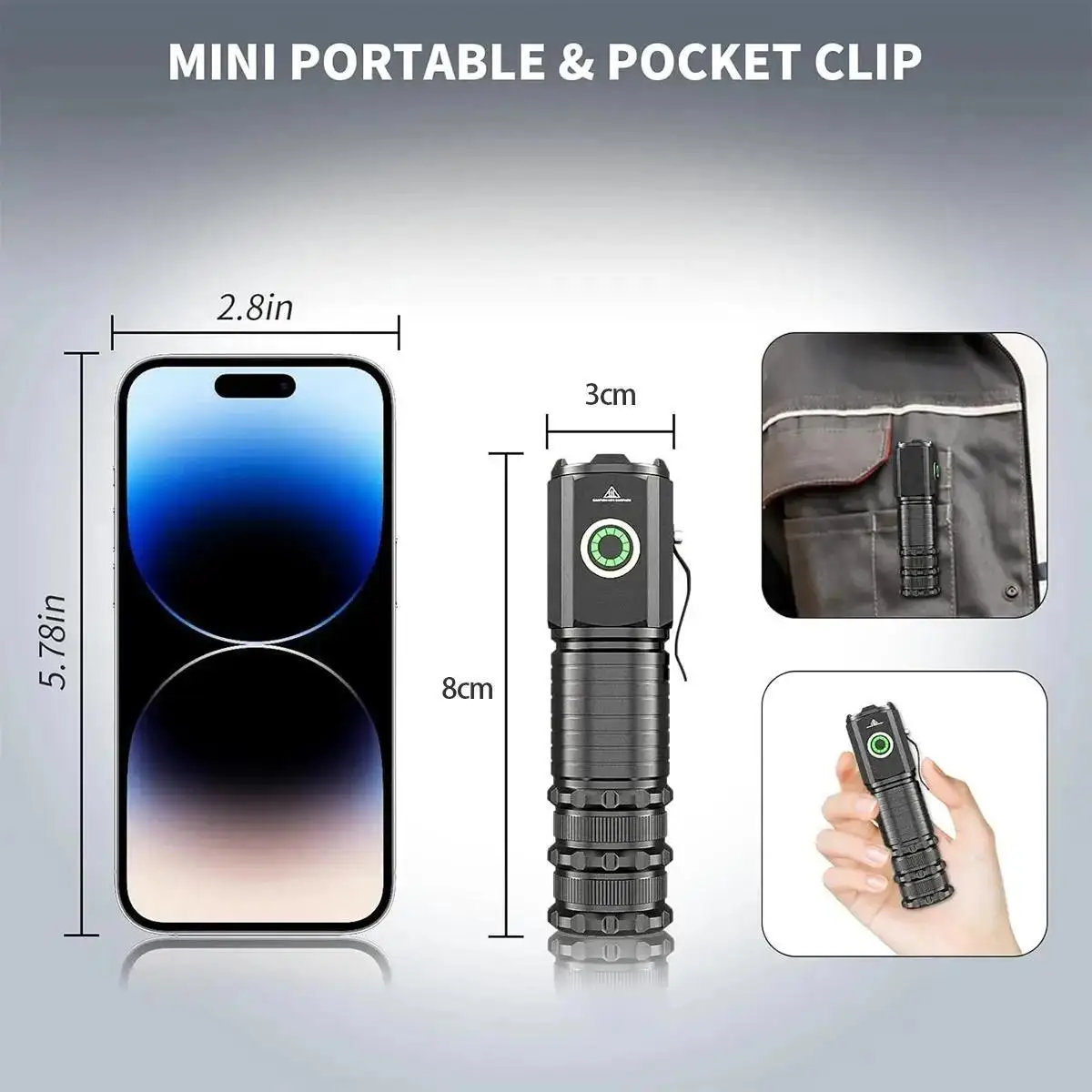 Flashlight With Power Indicator Mini Keychain Usb-C Rechargeable Small Led Waterproof High Quality With Magnet With Clip Durable