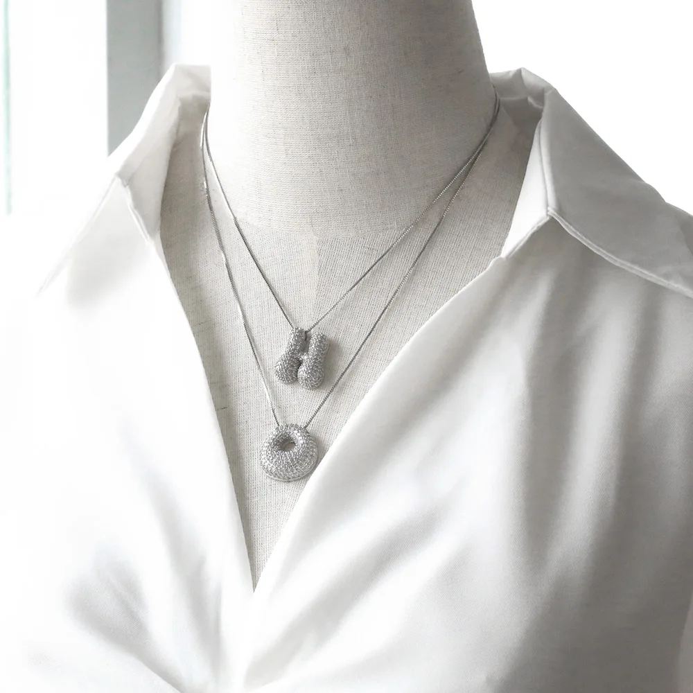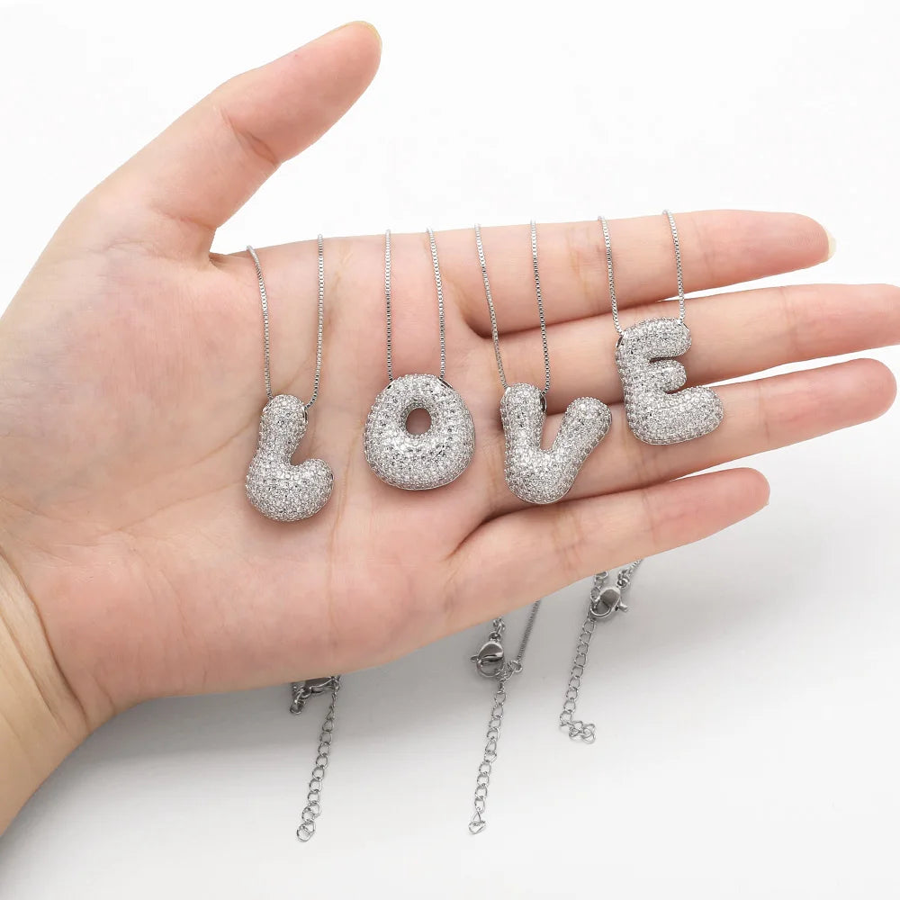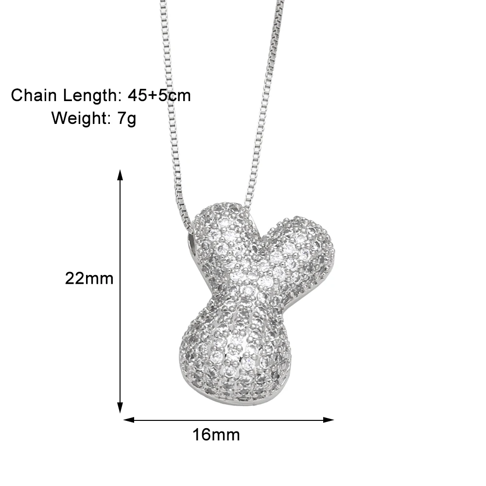 FLOLA Luxury Silver Color Crystal Initial Necklaces for Women Box Chain 26 Letters Necklaces Name Jewelry Gifts nkew15