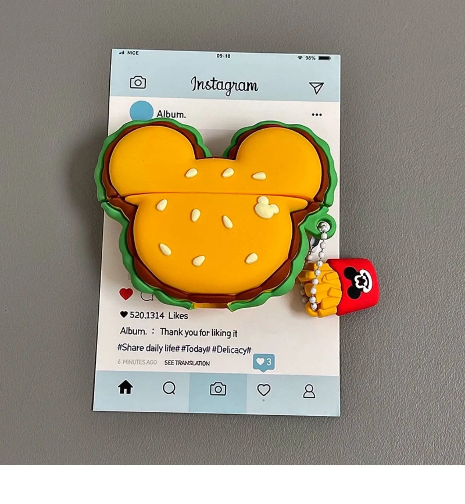 For Airpods 1 2 3 4 Pro Pro 2 Mickey Burger Silicone Earphone Case Accessories Cover