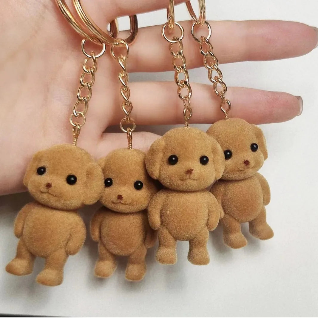 Forest Family Flocking Dog Keychain Cute Flocked Little Poodle Animals Keyring Bag Pendant Backpack Charms Accessories wholesale