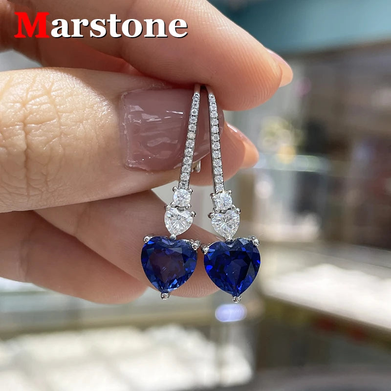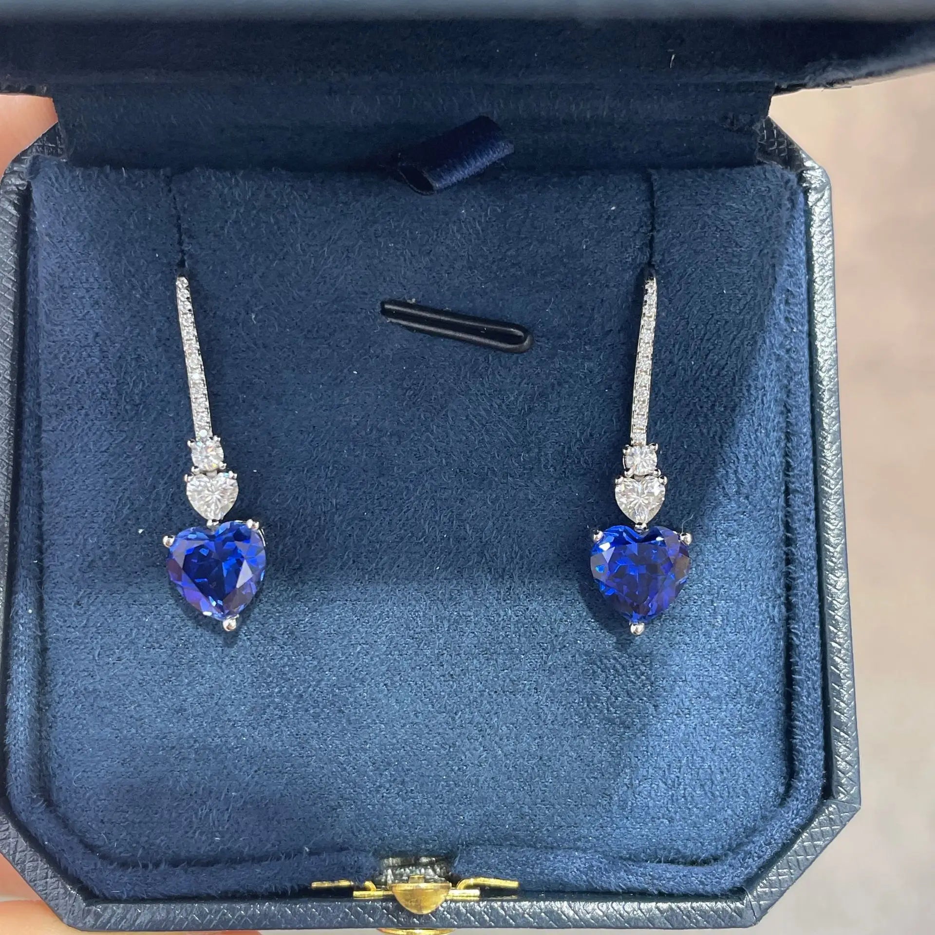 Full Moissanite D Color Diamond Stud Blue Lab Grown Sapphire Women's Earrings 925 Silver 18K White Gold Moissanite for Women