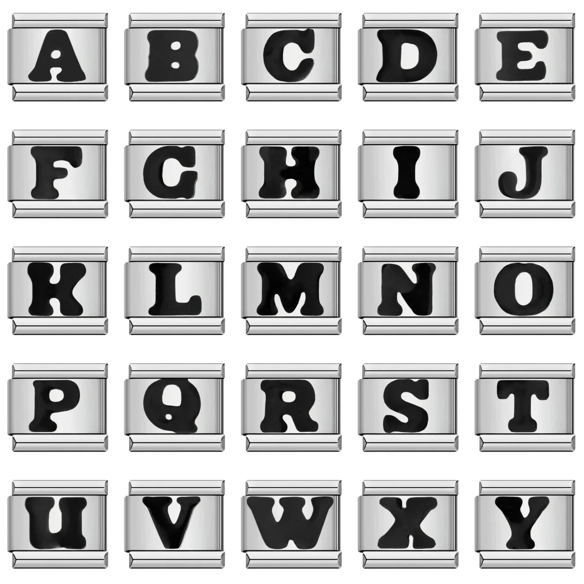 Glaze Black 26 English A-Z Letters Italian Links Charm Fit 9mm Stainless Steel Women Men Bracelet DIY Making 2025 Jewelry
