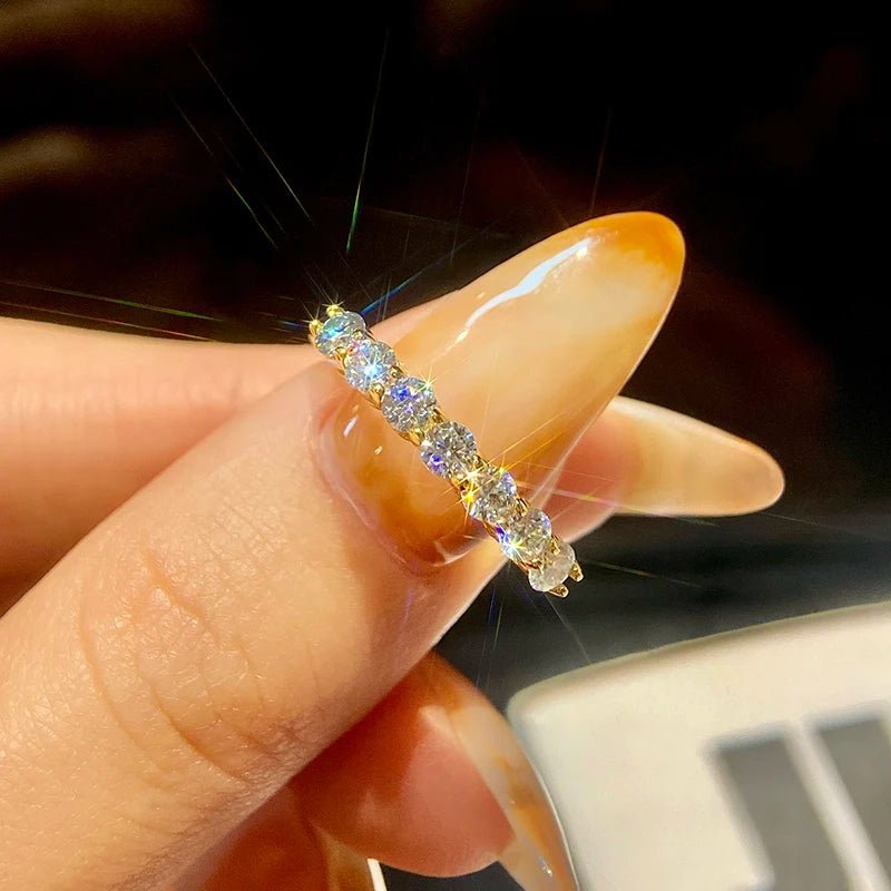 KNB Real Moissanite Ring 925 Sterling Silver Diamond Eternity Band Engagement Wedding Rings for Women Luxury Quality Jewelry