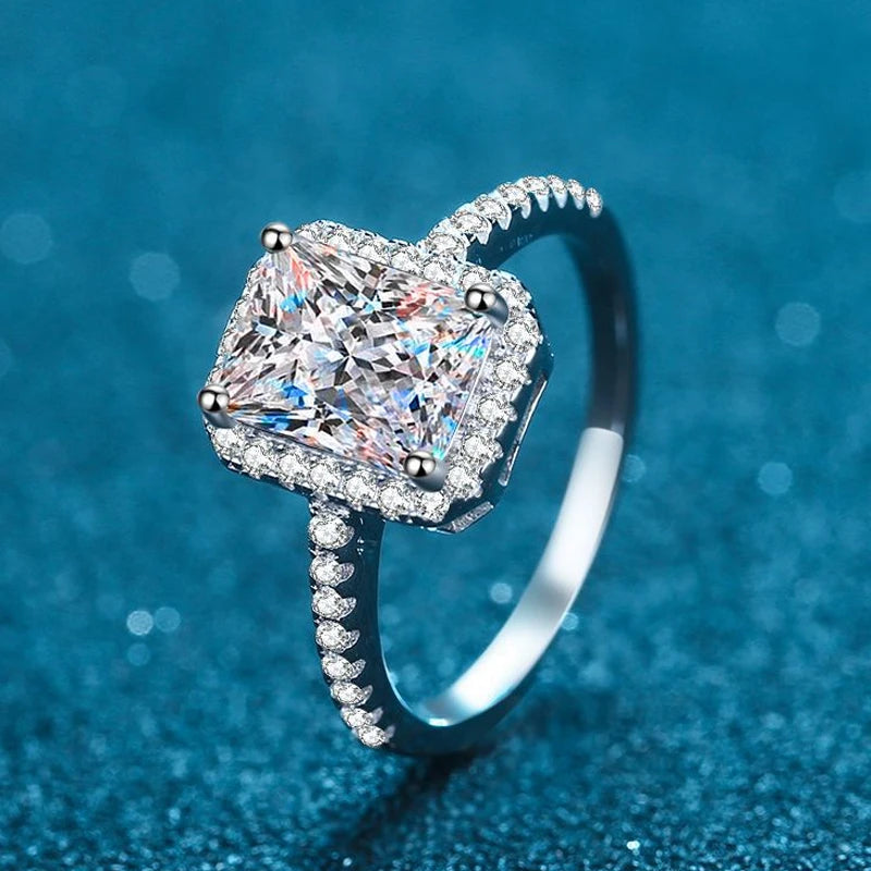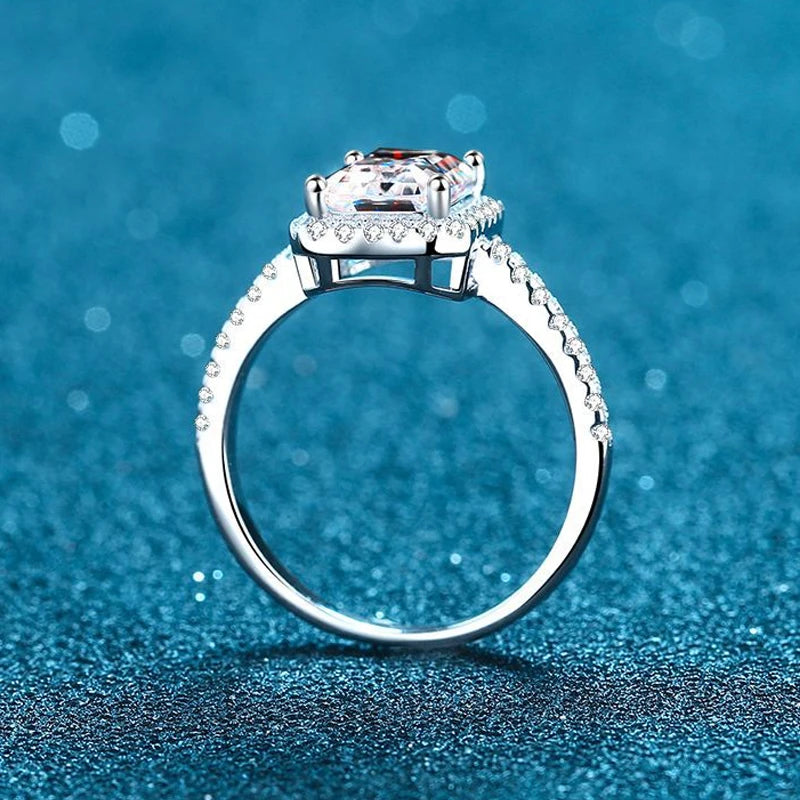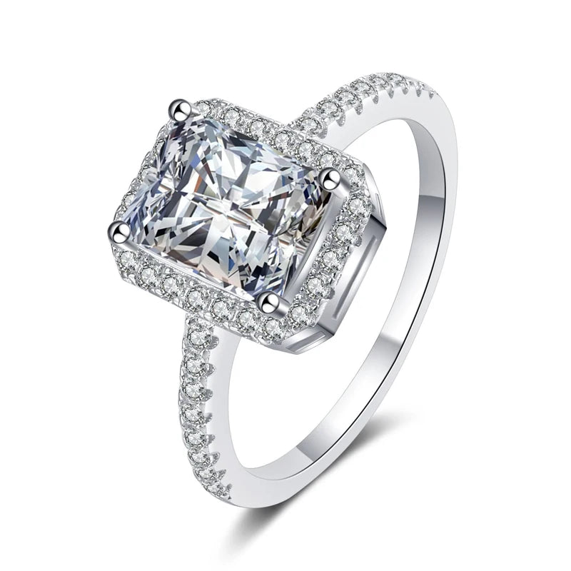 KNOBSPIN 1ct 2ct Emerald/Radiant Cut Moissanite Ring 925 Sterling Silver Plated with 18k White Gold Rings for Women Fine Jewelry