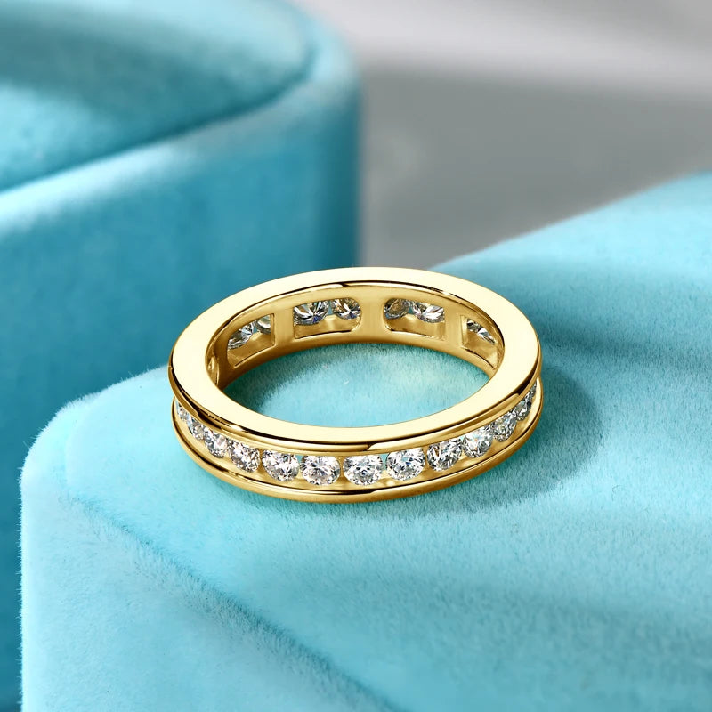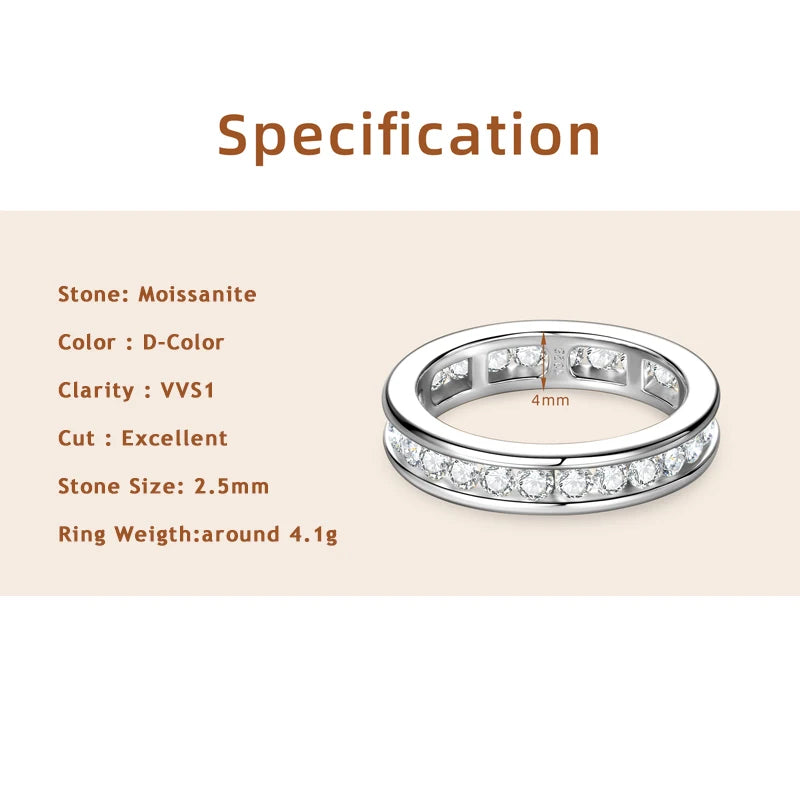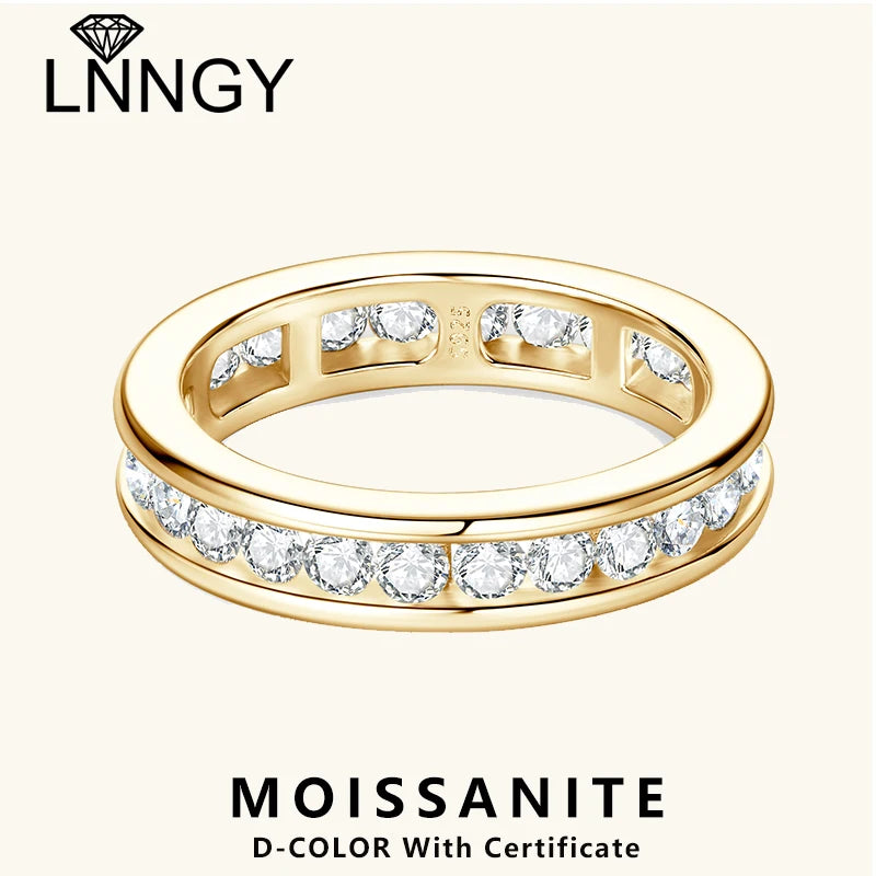 Lnngy 2.5mm Moissanite Diamond Rings Certified 925 Sterling Silver Eternity Band For Women Couples Wedding Ring Jewelry Gift