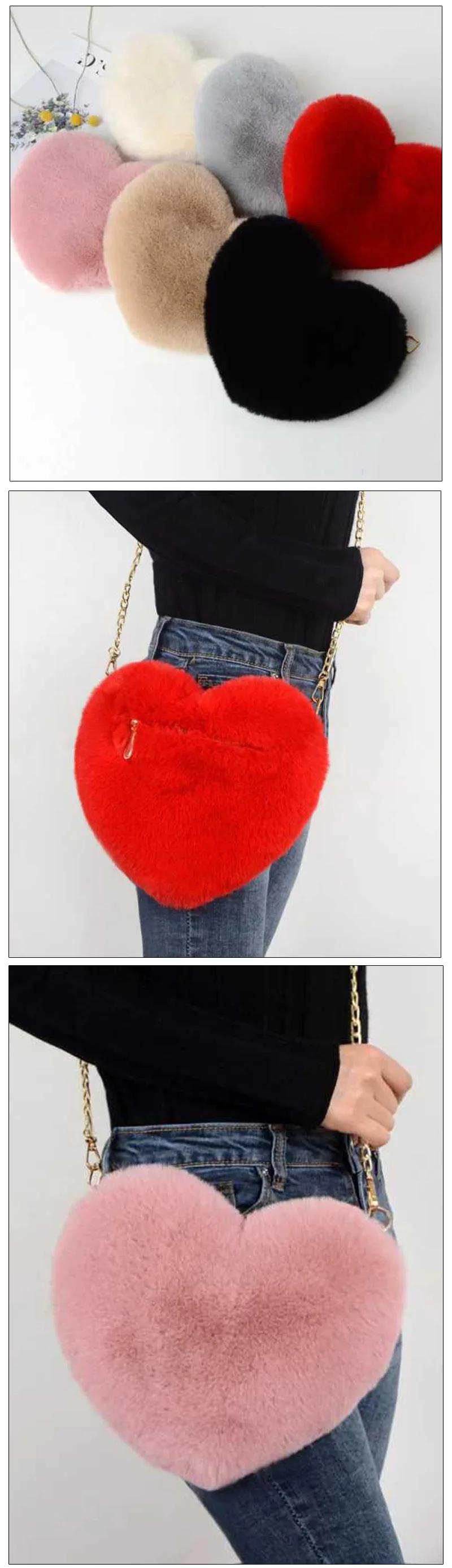 Love Bag New Valentine's Day Chain Plush Heart shaped Bag Female Diagonal Cross Bag Peach Heart shaped Love Small Bag Female