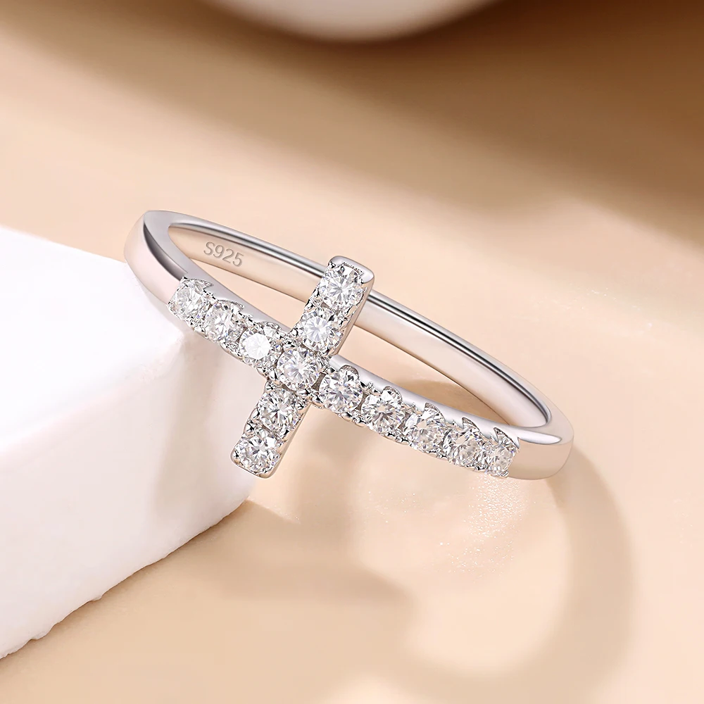 M-JAJA Moissanite Ring Original 925 Sterling Silver 3mm D Color VVS1 Cross Wedding Bands for Women Couple Promise Rings Jewelry
