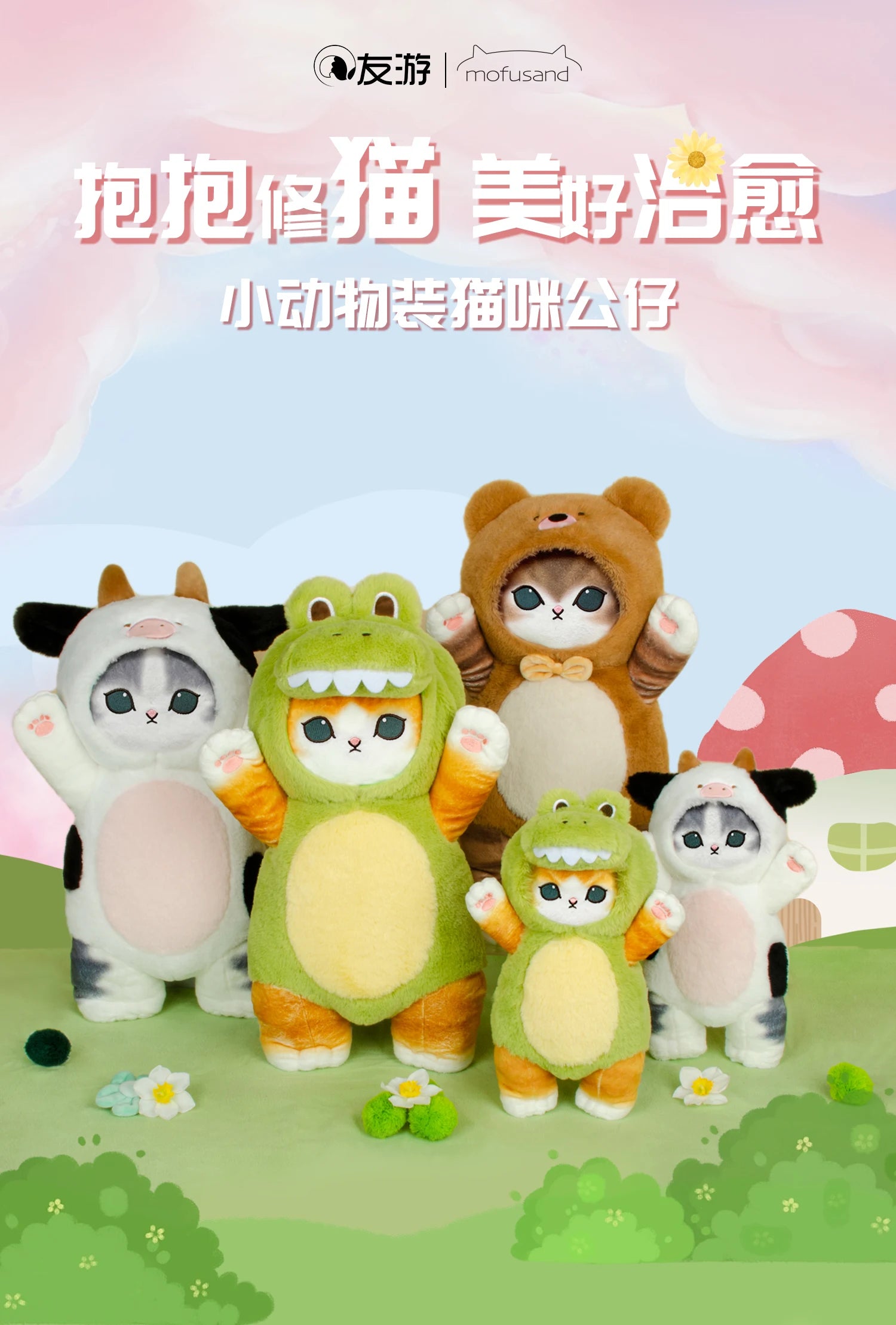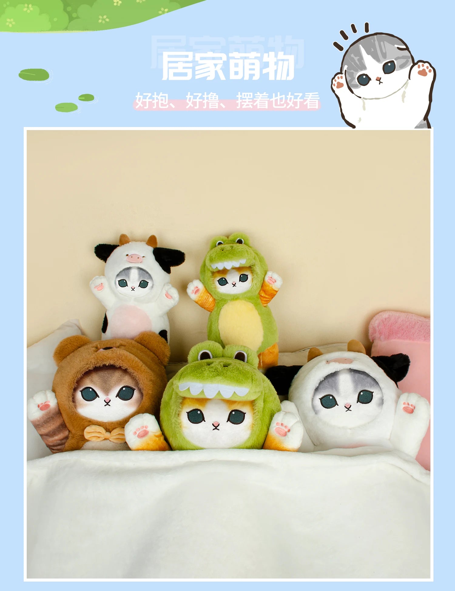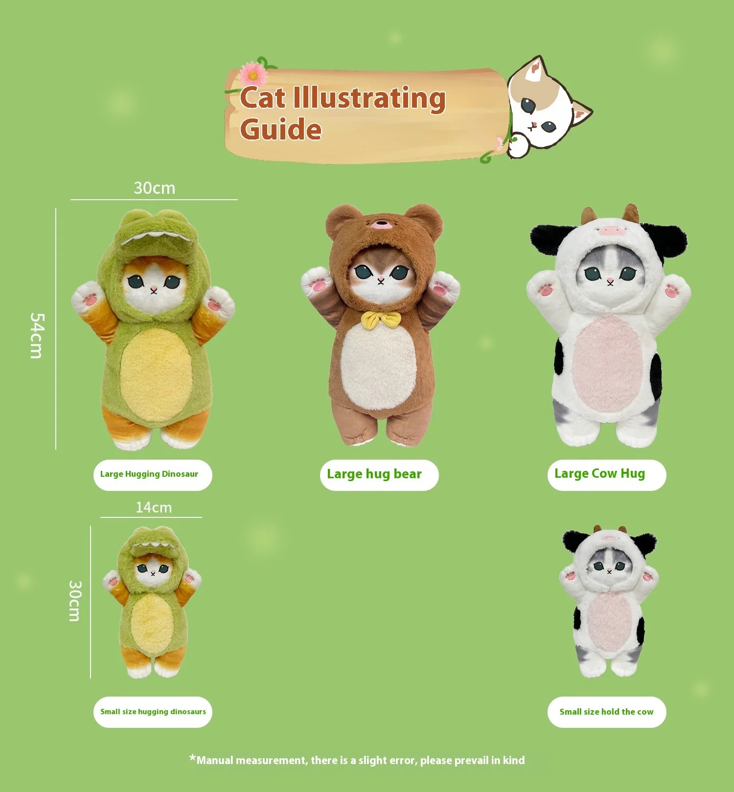 Mofusand 30/50cm Plush Toys Kawaii Cat Cosplay Costume With Dino/Cow Outfits Cute Stuffed Animal Birthday Gift For Kids And Girl