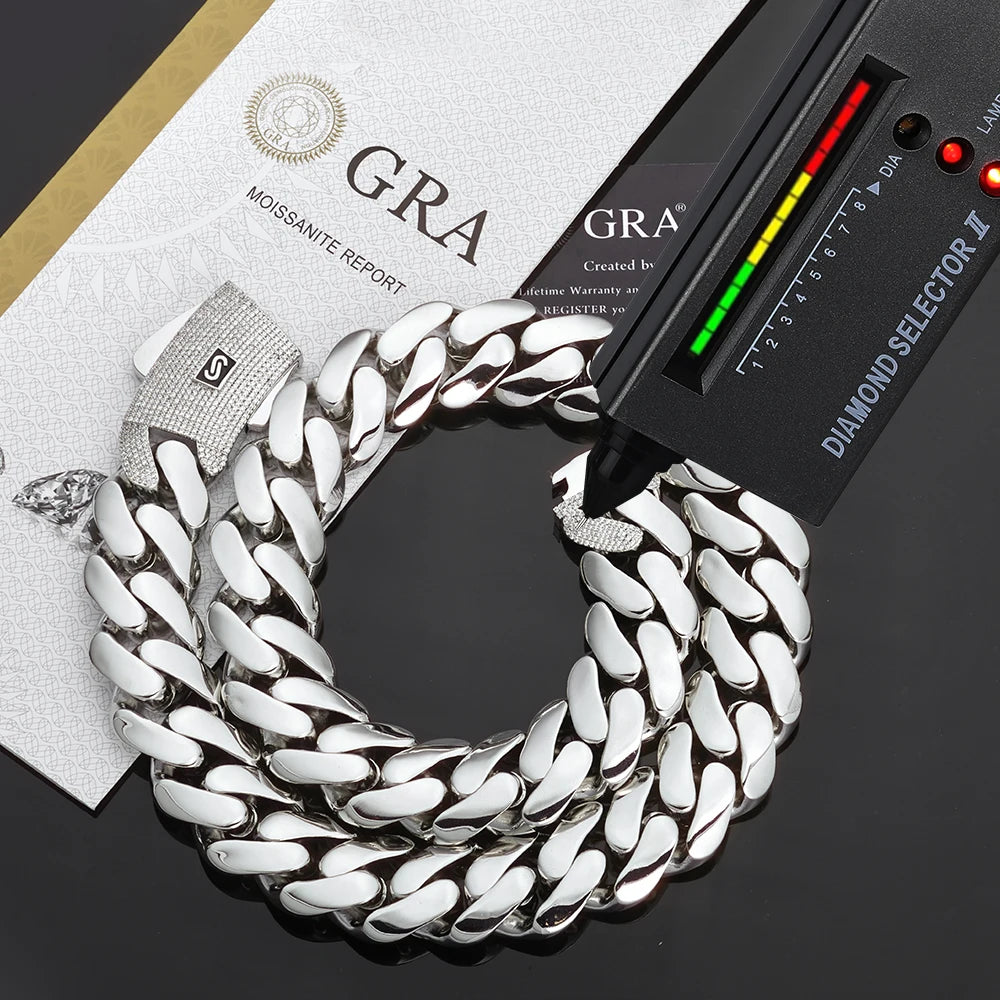 Moissanite Necklace S925 Pure Silver Cuban 14K Gold Plated Hip-hop Jewelry VVS Men's Exquisite Holiday Gift