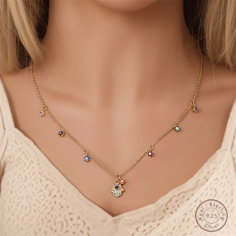 Necklace 925 Sterling Silver Evil Eye Gold Classic Simple Adjustable Necklace Women Girls Fashion Jewelry Gift