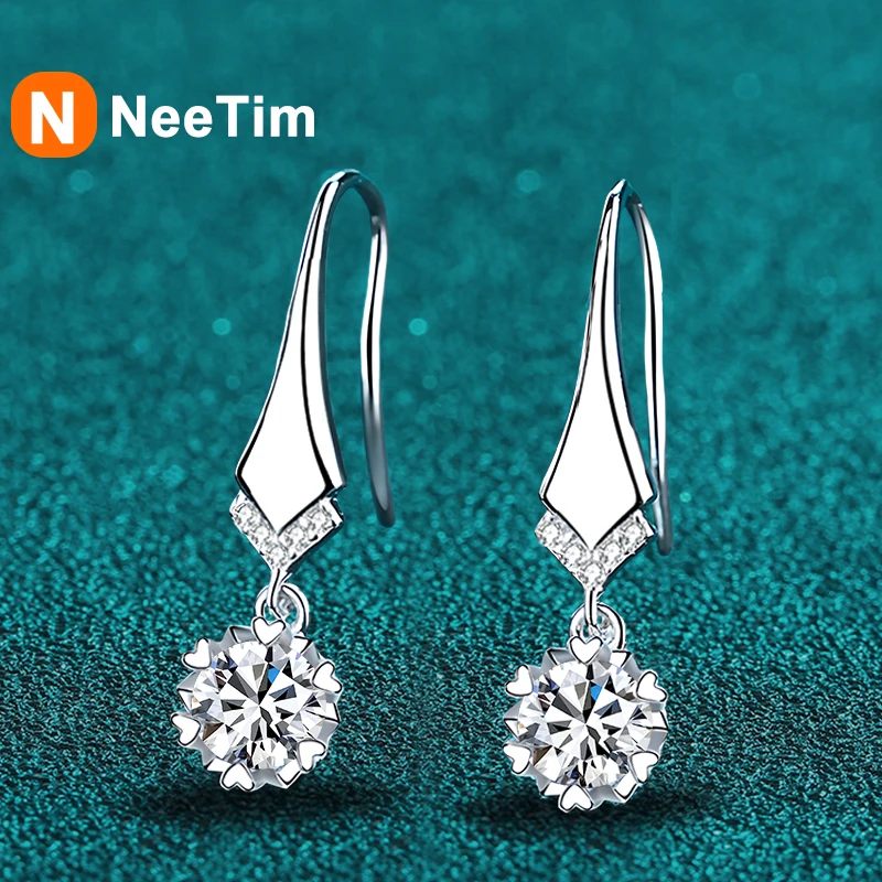 NeeTim 1ct 0.5ct D Color Moissanite Drop Earrings For Women S925 Silver Lab Diamond Engagement Wedding Party Snowflake Earring