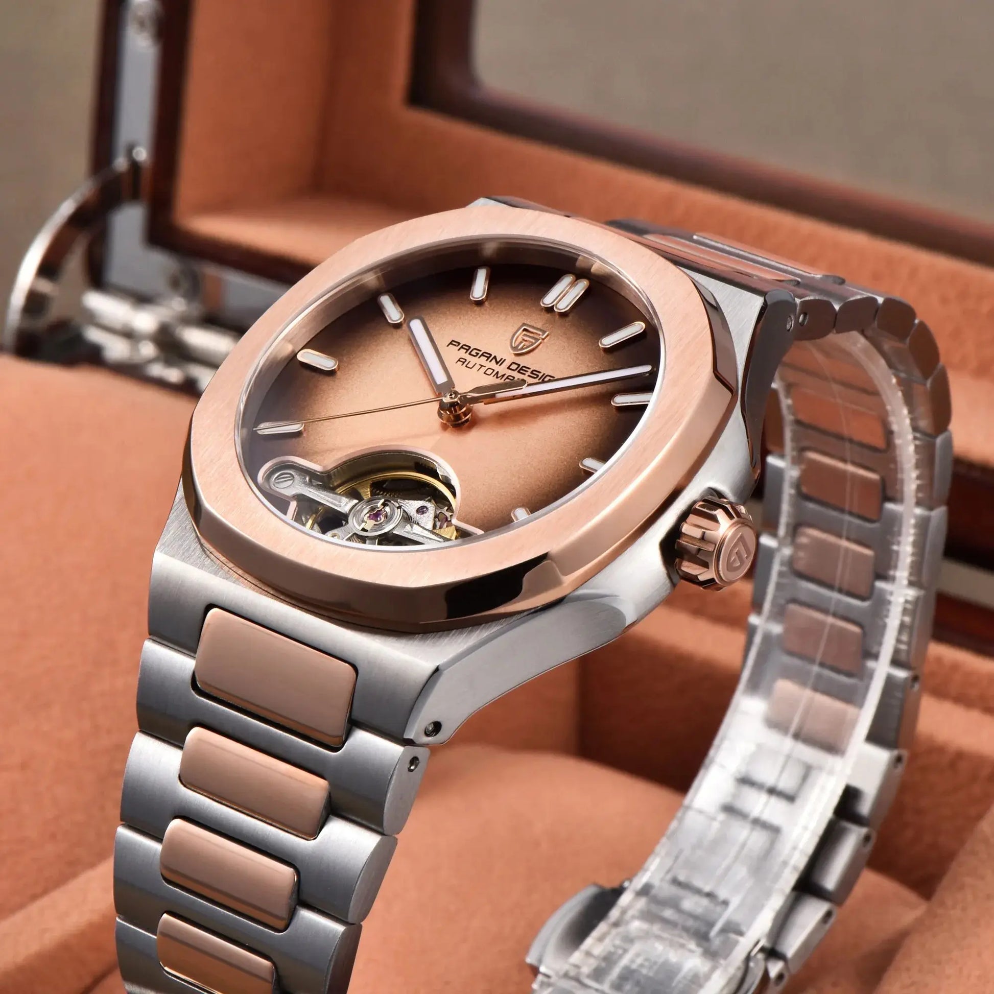 PAGANI DESIGN Men's Watches Rose Gold Skeleton Tourbillon Automatic Watch For Men Stainless steel Fashion Mechanical Wristwatch