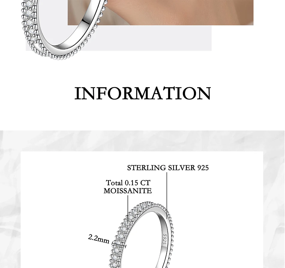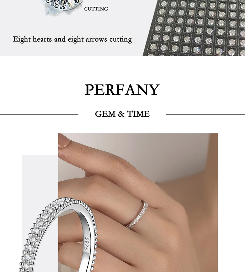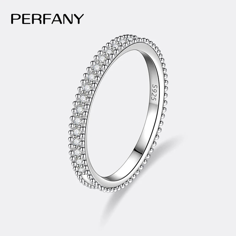 PERFANY All Moissanite Ring for Women S925 Pure Silver Shining GRA Laboratory Diamond Stackable Ring Fashion Wedding Jewelry
